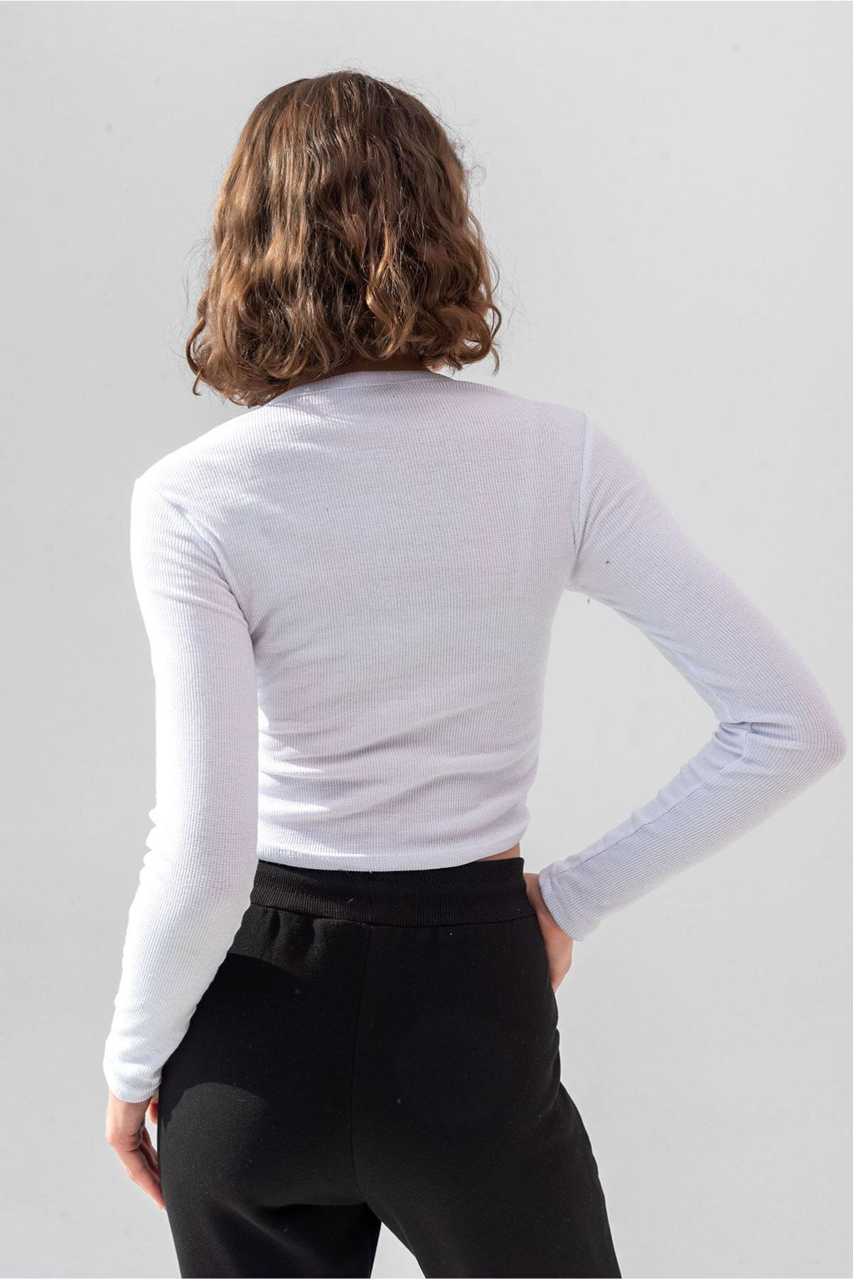 Beyaz Uzun Kollu Fitilli Bluz Crop Örme T-shirt Beyaz Uzun Kollu Fitilli Bluz Crop Örme T-shirt la & vetta L