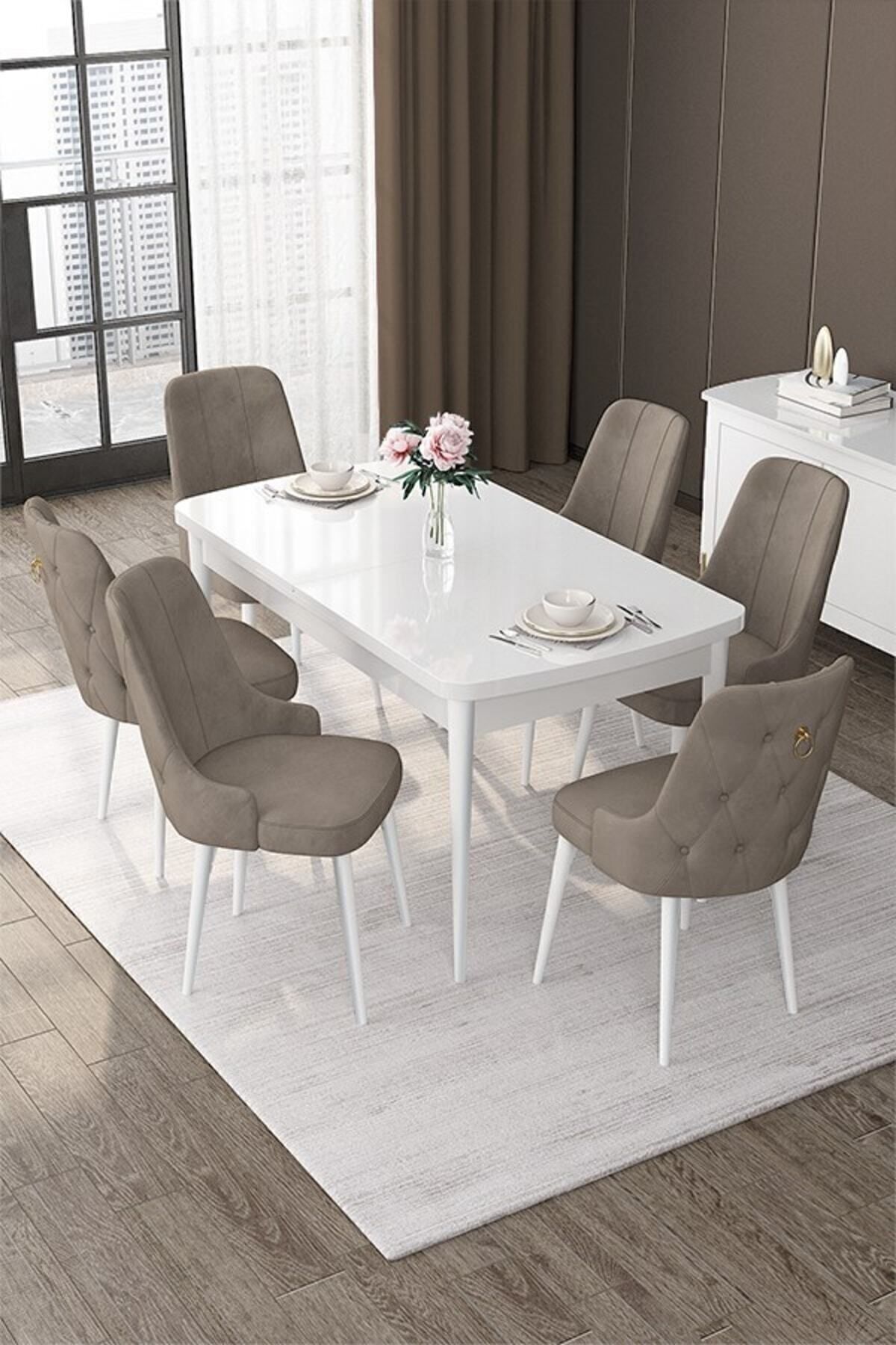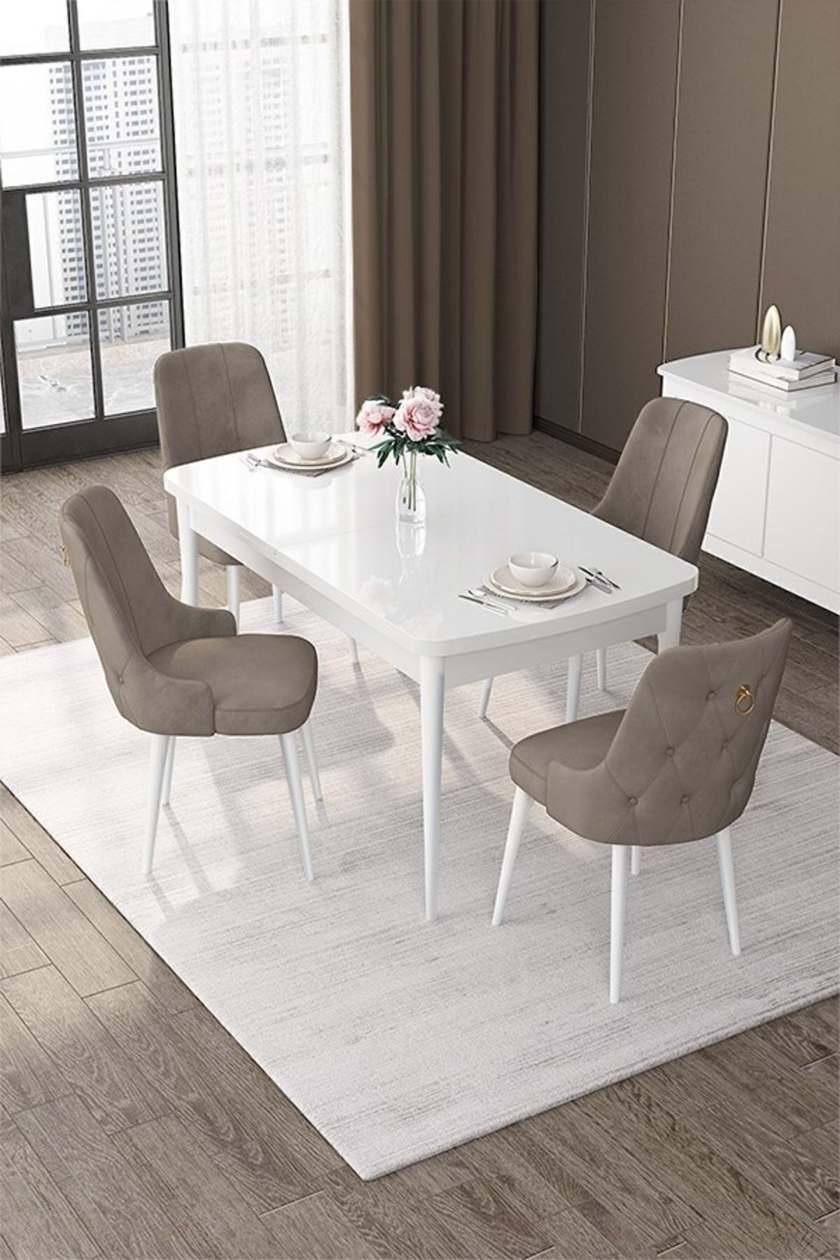 Nex Serisi 80x132 Mdf Açılabilir Beyaz Masa Takımı Ve 6 Lacivert Sandalye Gold Detay Nex Serisi 80x132 Mdf Açılabilir Beyaz Masa Takımı Ve 6 Lacivert Sandalye Gold Detay 24-NEX01BYZ06GLD تک سایز