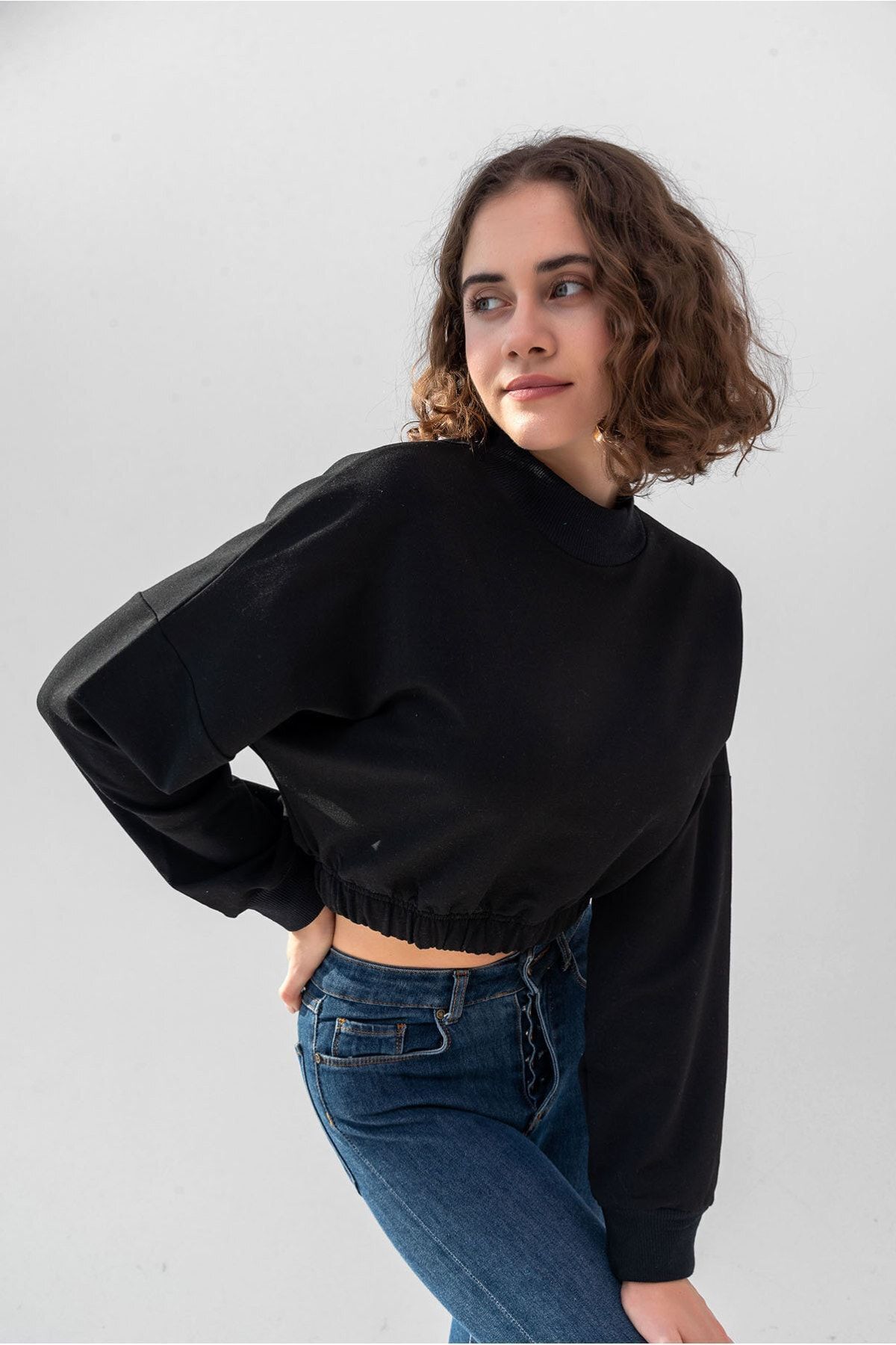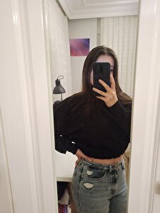 Kadın Siyah Pamuk Bisiklet Yaka Crop Sweatshirt Kadın Siyah Pamuk Bisiklet Yaka Crop Sweatshirt LACSWEAT L