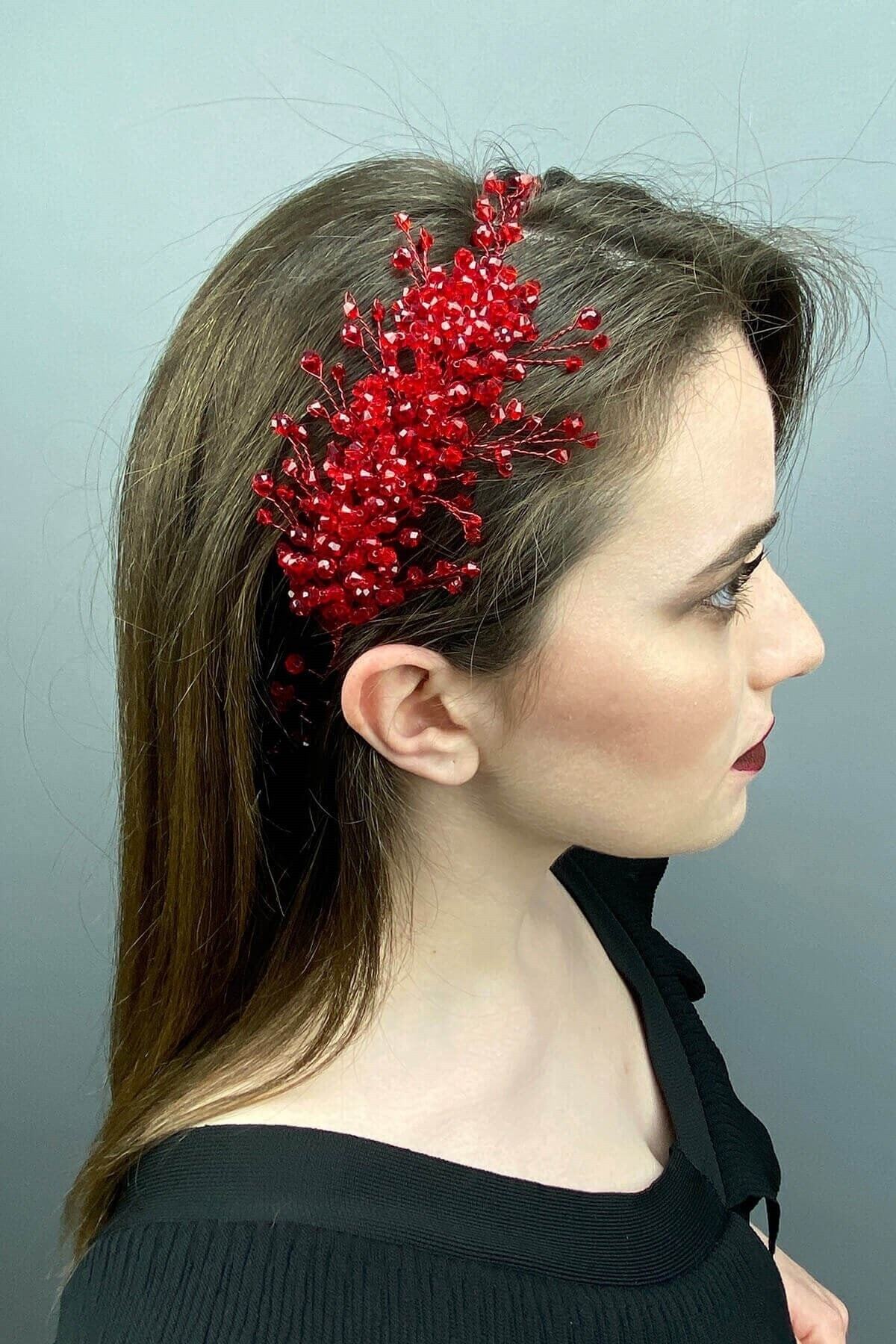 Kırmızı Kristal Taşlı Nişan, Kına, Düğün Saç Aksesuarı, Gelin Tacı Kırmızı Kristal Taşlı Nişan, Kına, Düğün Saç Aksesuarı, Gelin Tacı 0147 تک سایز
