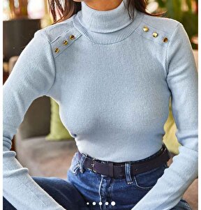 Kadın Bebe Mavi Omuzu Düğme Detaylı Balıkçı Yaka Şardonlu Kazak KZK-19000495 Kadın Bebe Mavi Omuzu Düğme Detaylı Balıkçı Yaka Şardonlu Kazak KZK-19000495 Standart