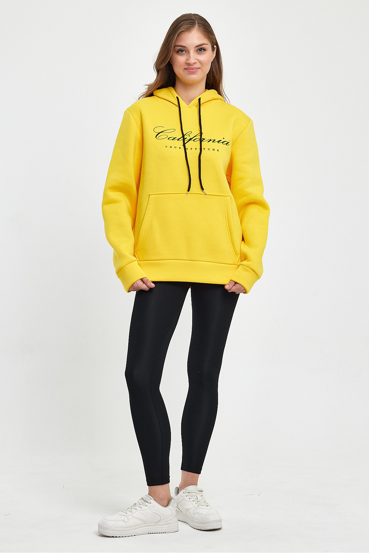 Limon Sarısı Kapüşonlu Kanguru Cepli Basic Sweatshirt Limon Sarısı Kapüşonlu Kanguru Cepli Basic Sweatshirt 2703 2XL
