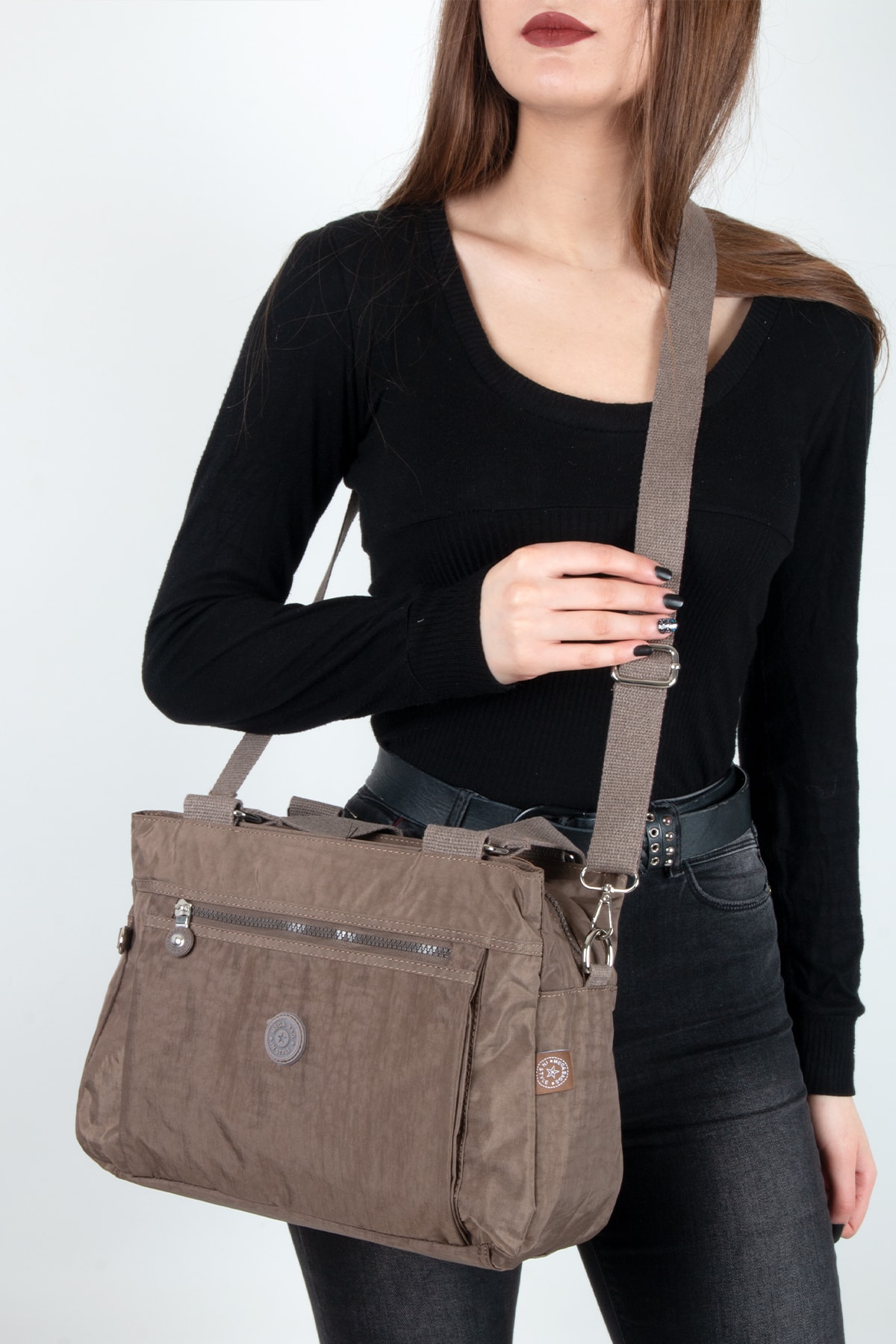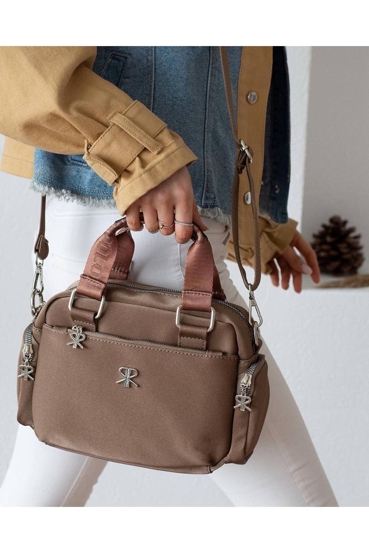 Kadın Taba Çok Bölmeli El Ve Omuz Çantası Kadın Taba Çok Bölmeli El Ve Omuz Çantası TMOF9898 تک سایز