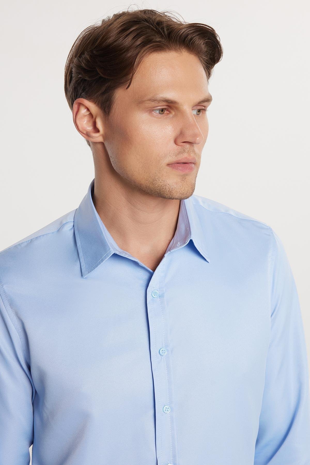 Slim Fit Uzun Kollu Kolay Ütü Teri Emen Nefes Alan Doku Kravatlık Dört Mevsim Mavi Erkek Gömlek Slim Fit Uzun Kollu Kolay Ütü Teri Emen Nefes Alan Doku Kravatlık Dört Mevsim Mavi Erkek Gömlek DR220054-01 3XL