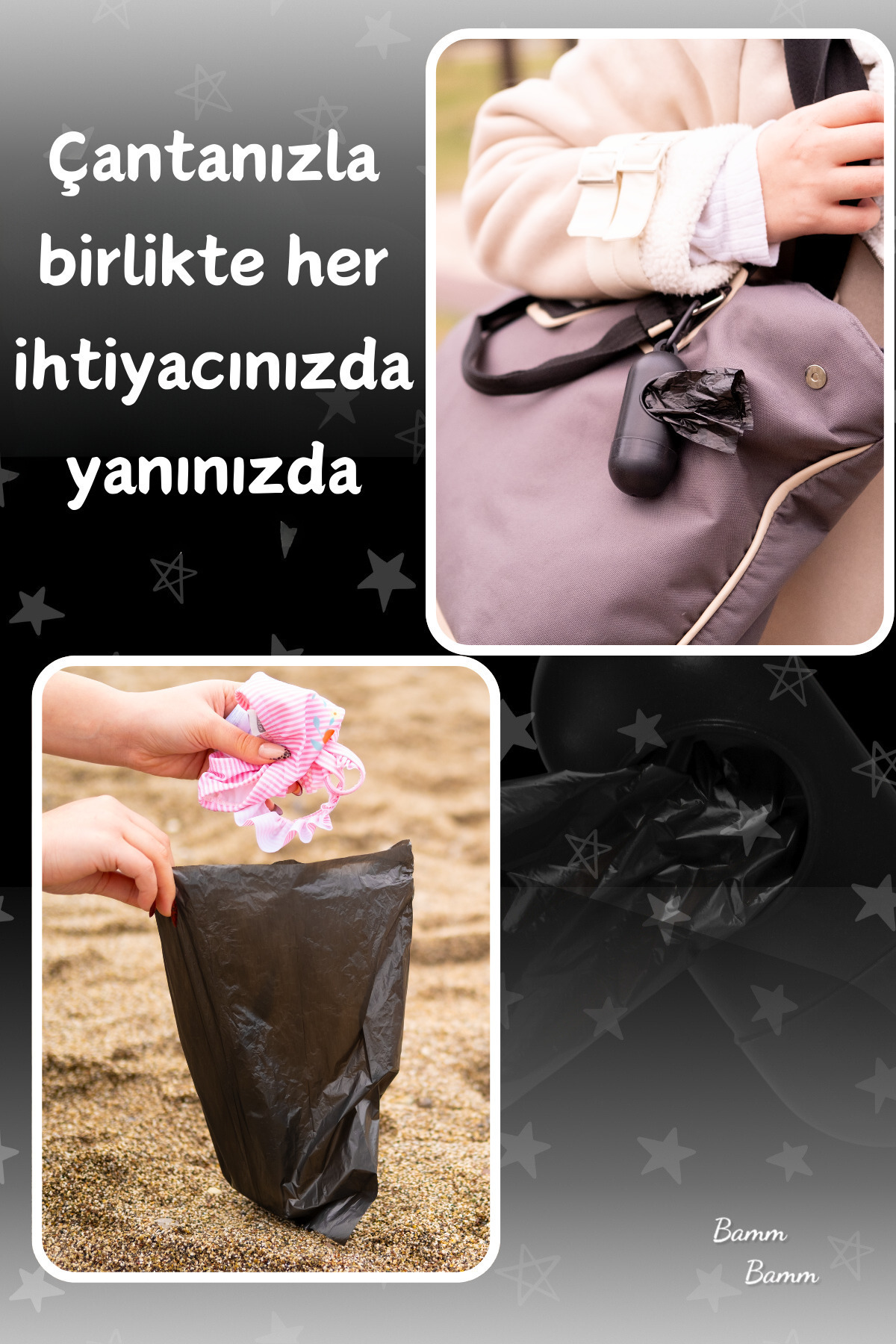 Kirli Bebek Bezi Çöp Poşeti Çanta Boy Siyah Taşıma Çantası Ve 2 Rulo (30 POŞET) Kirli Bebek Bezi Çöp Poşeti Çanta Boy Siyah Taşıma Çantası Ve 2 Rulo (30 POŞET) ÇantaBoySiyah تک سایز