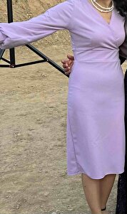 Lila Krep Kumaş Uzun Kollu Kruvaze Yaka Elbise Lila Krep Kumaş Uzun Kollu Kruvaze Yaka Elbise DFX058706 XL