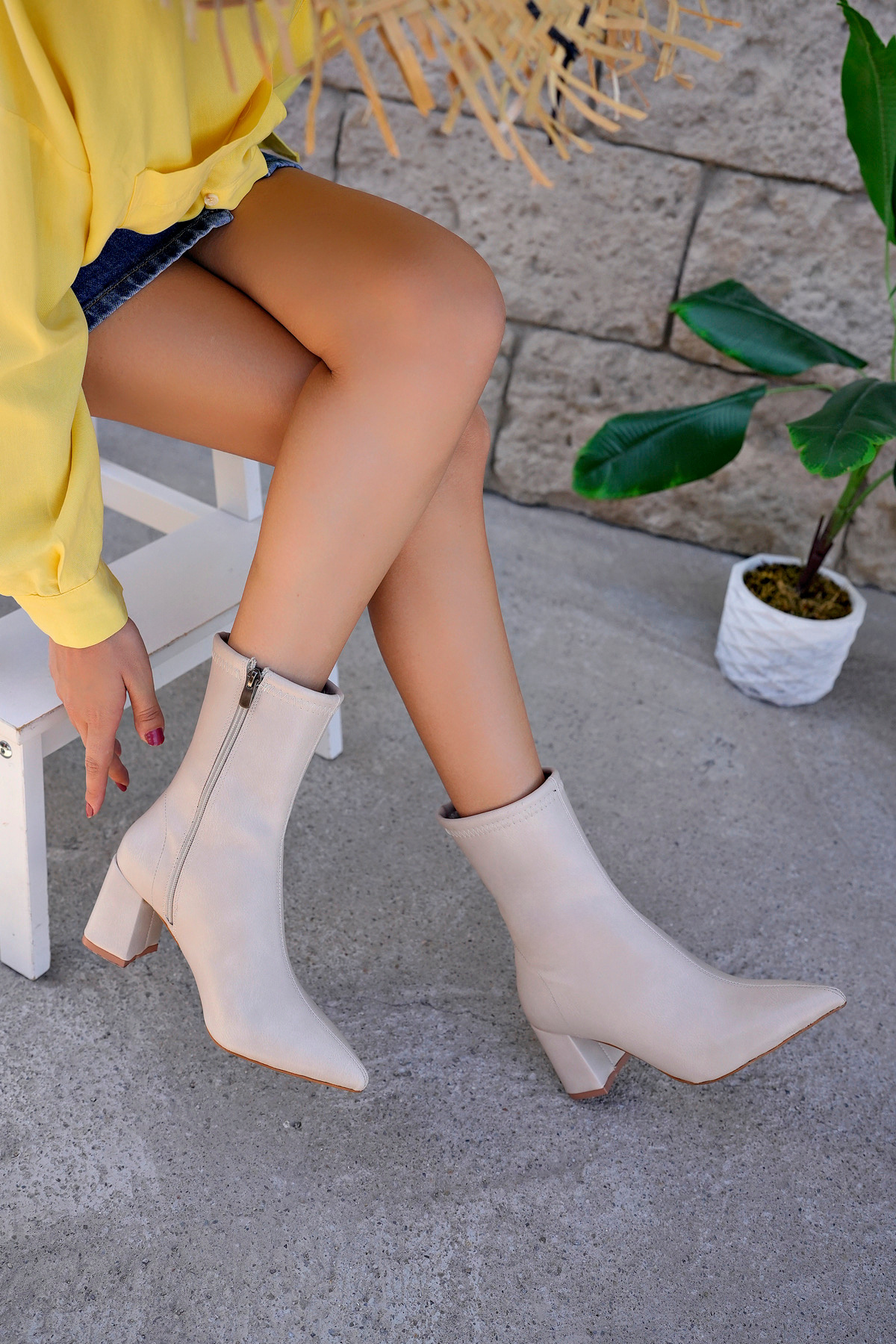 Kadın Topuklu Bot Sivri Burun Arkadan Fermuarlı Kalın Ökçe Kikas ekru Kadın Topuklu Bot Sivri Burun Arkadan Fermuarlı Kalın Ökçe Kikas ekru 3211006210 40