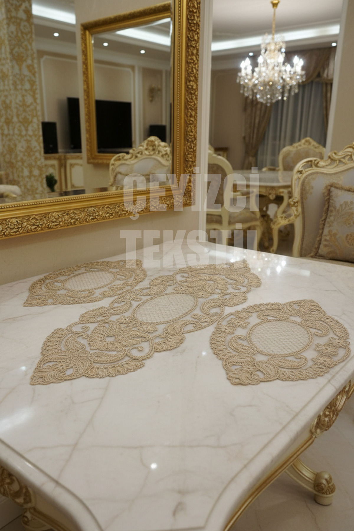 Damla 5 Parça Lüks Runner Salon Oda Sehpa Masa Örtü Takımı Fransız Güpürlü Çeyizlik Set Sütlü Kahve Damla 5 Parça Lüks Runner Salon Oda Sehpa Masa Örtü Takımı Fransız Güpürlü Çeyizlik Set Sütlü Kahve 10210111 40 x 32