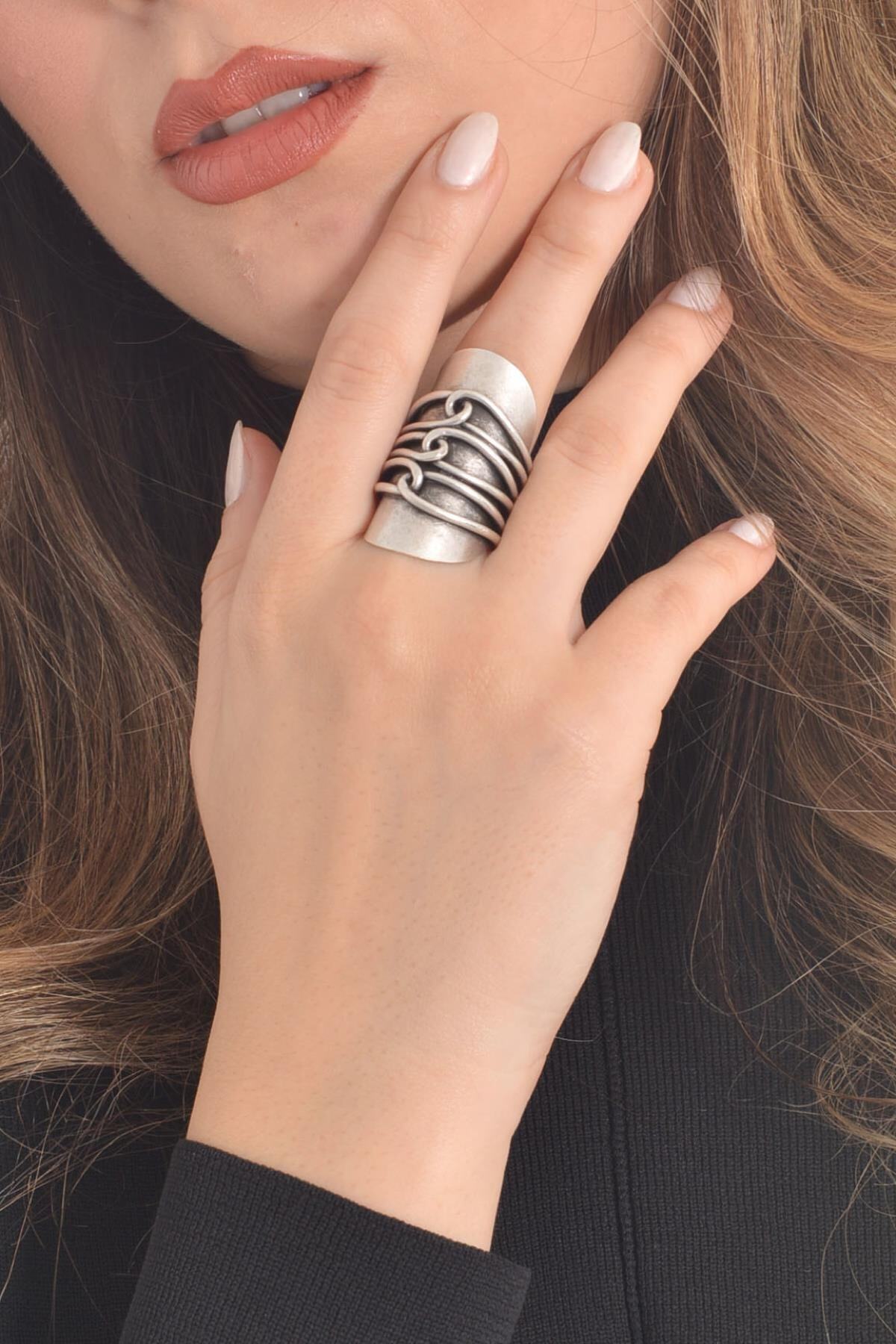Kadın Antik Gümüş Kaplama Yüzük Kadın Antik Gümüş Kaplama Yüzük LBKDNYZKAGK1060 تک سایز