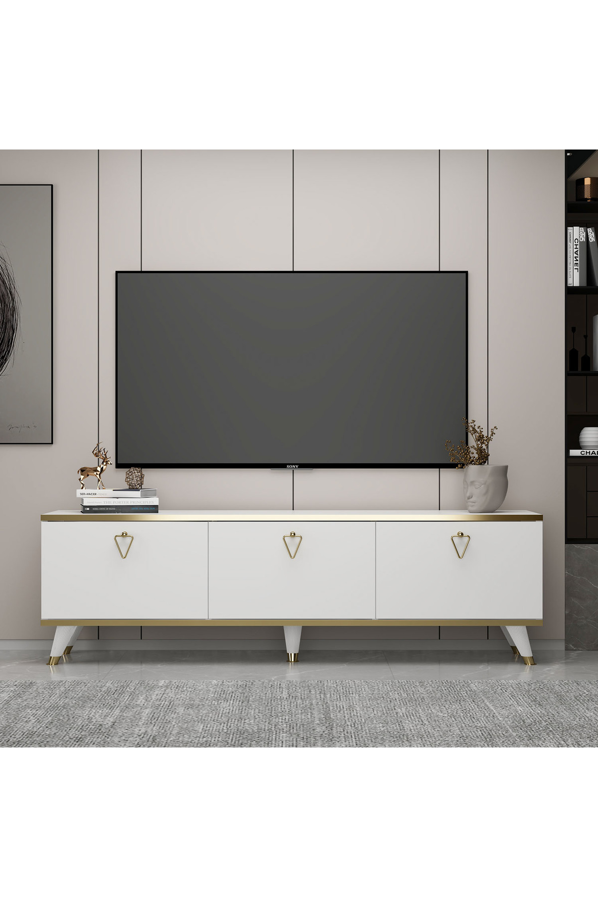 Hermes Tv Ünitesi 150 Cm Beyaz-altın Hermes Tv Ünitesi 150 Cm Beyaz-altın Z1552 BYZ ALTN تک سایز