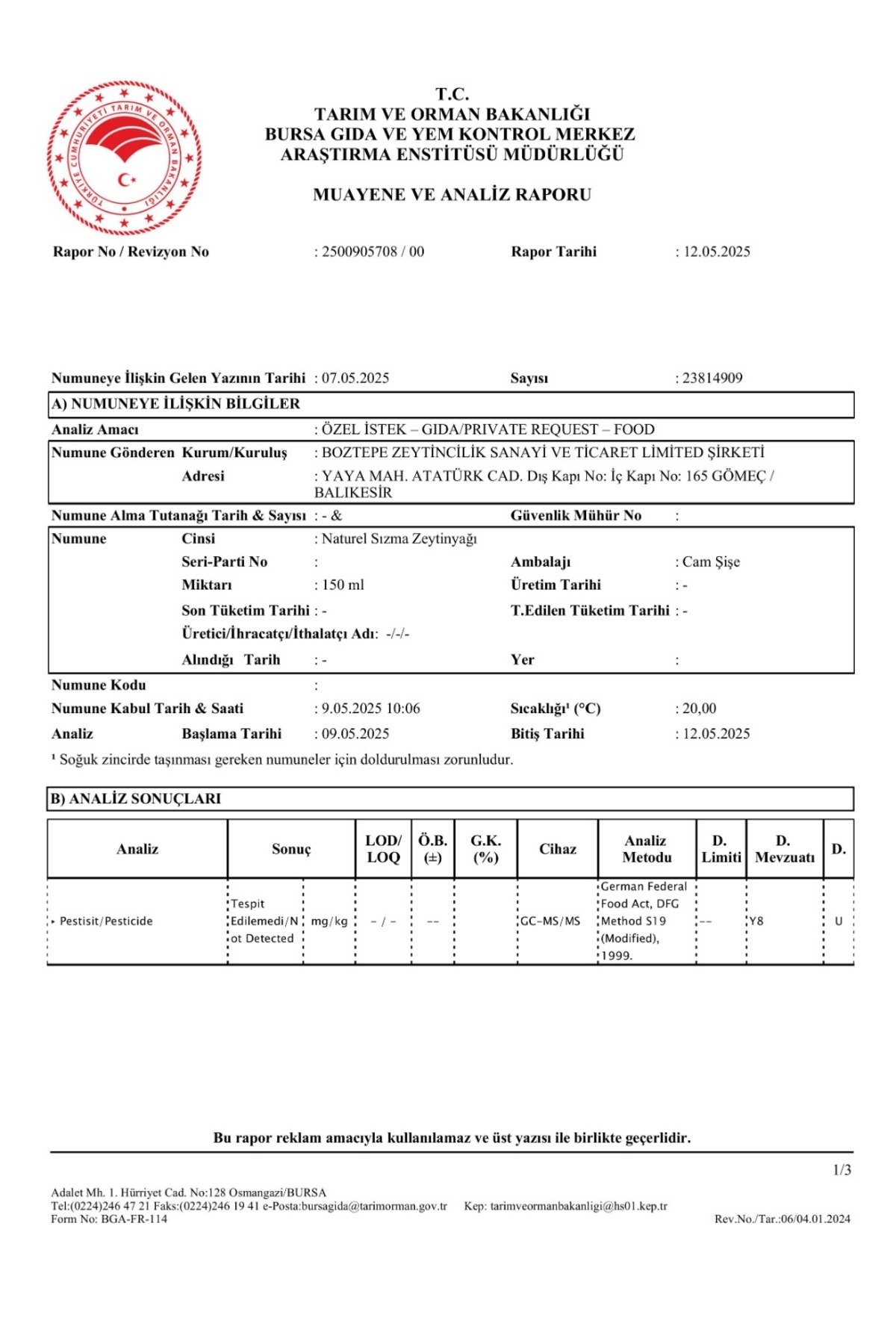 @doktoranne nin tavsiyesiyle aldım, çok lezzetli, asit oranı da düşük zeytinyağı çok beğendik. Teşekkürler.