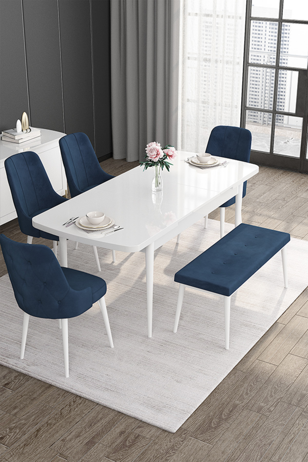 Roy Serisi 80x132 Mdf Beyaz Masa Takımı 4 Gri Sandalye Ve 1 Bench Roy Serisi 80x132 Mdf Beyaz Masa Takımı 4 Gri Sandalye Ve 1 Bench 24ROY1BYZ4BNC1 تک سایز