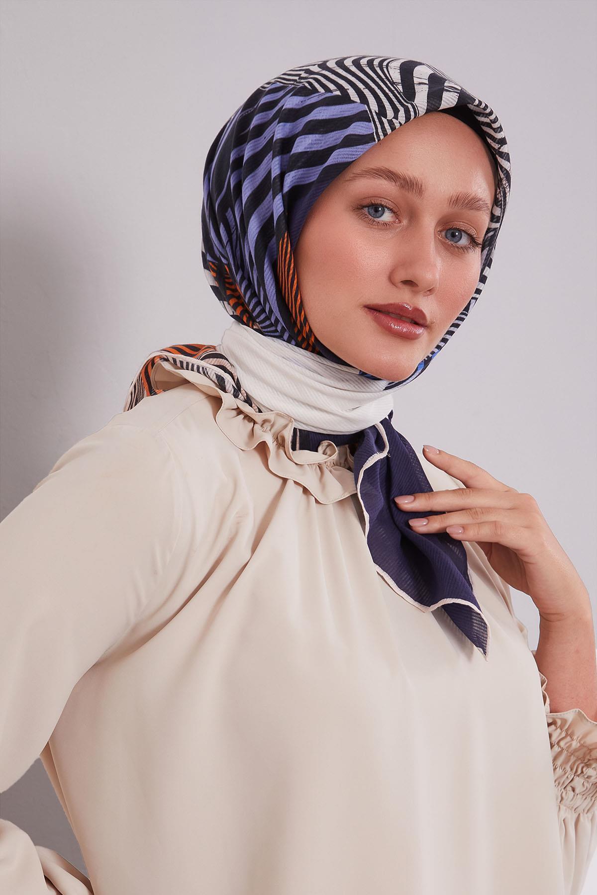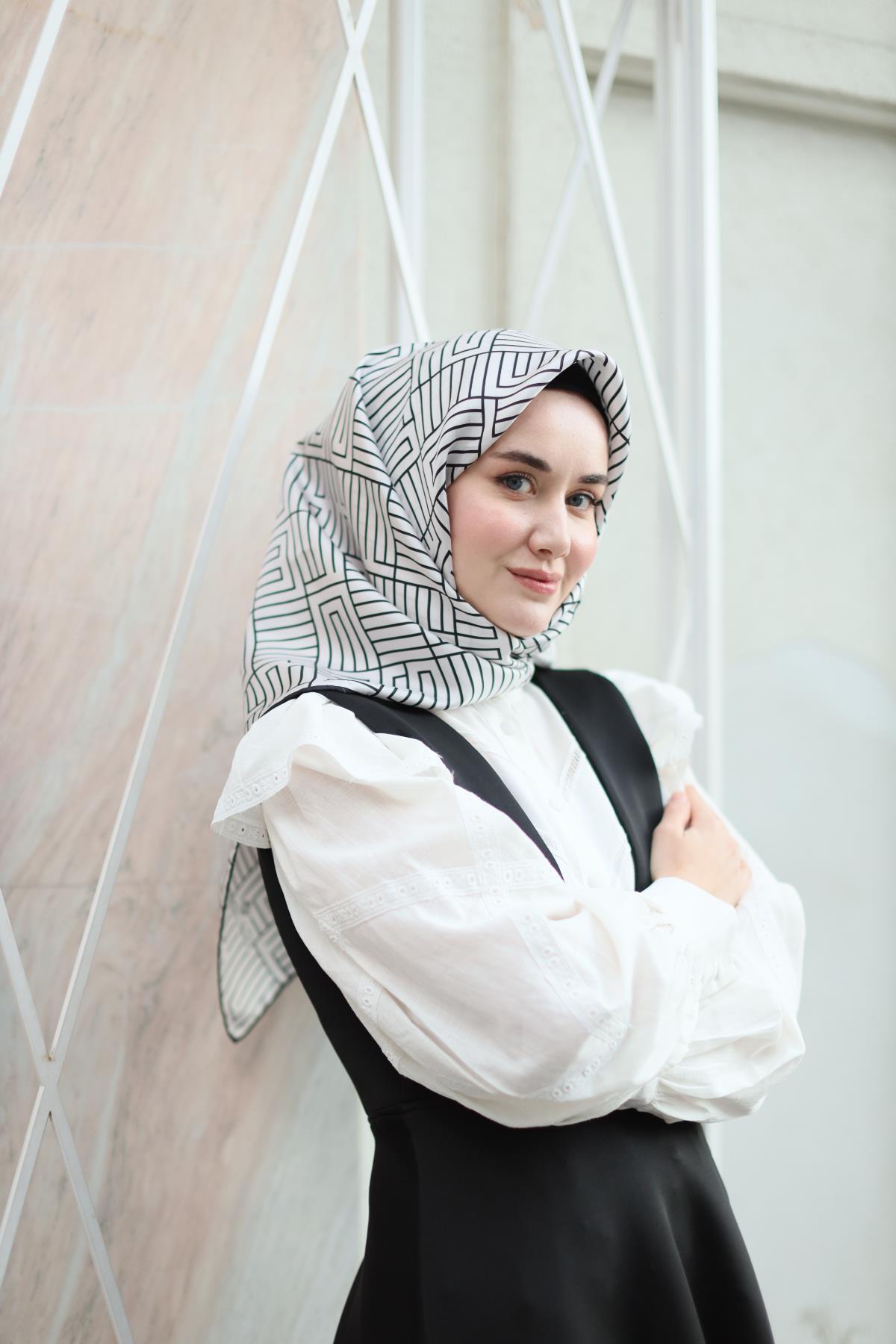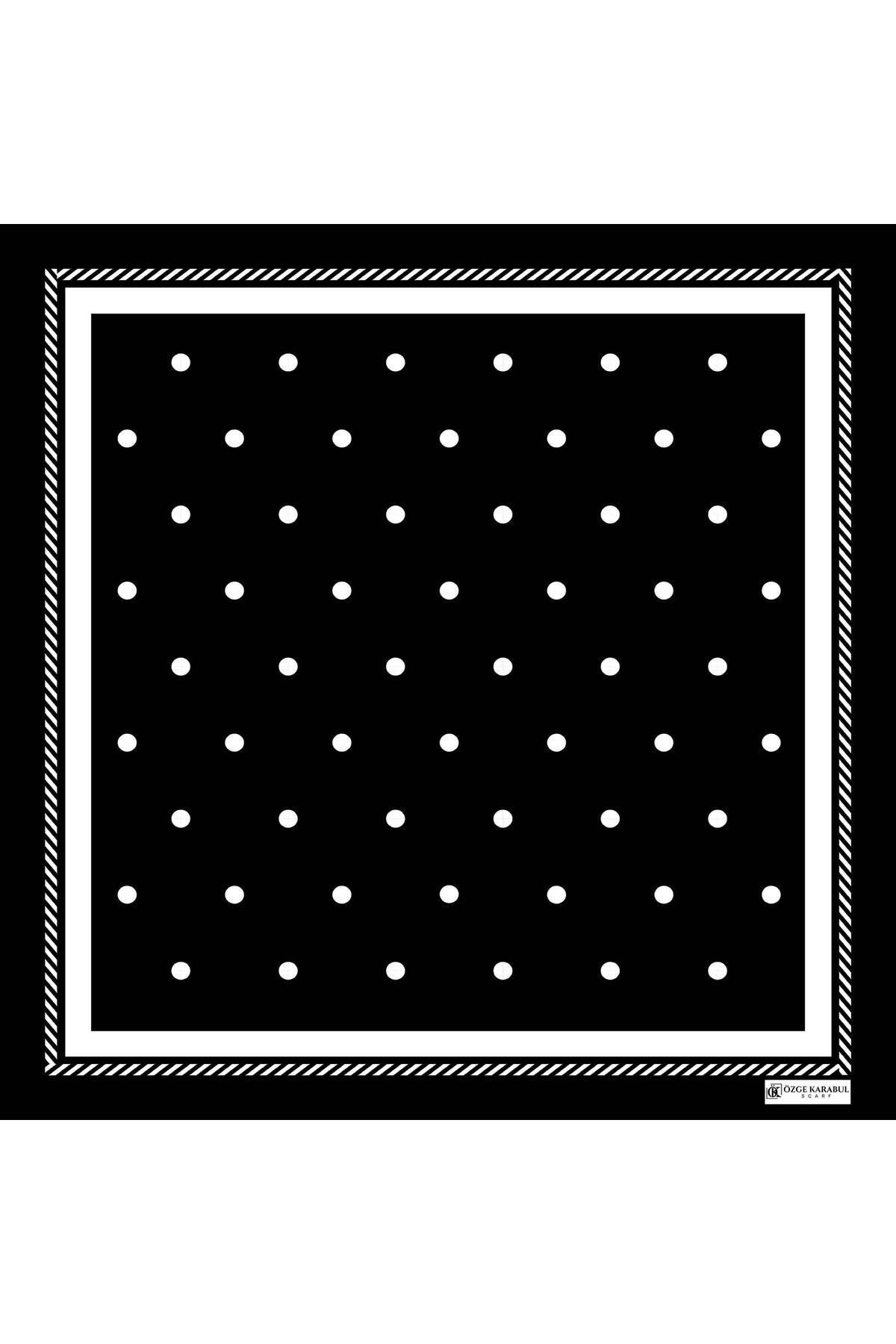 Twill İpek Eşarp - 11390-02 Krem Siyah Twill İpek Eşarp - 11390-02 Krem Siyah 90x90