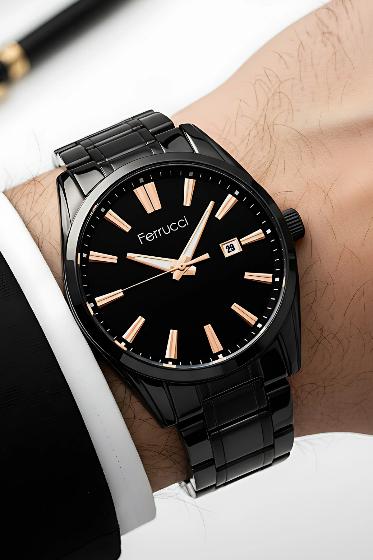 Takvimli Erkek Kol Saati Çelik Kordon 3 Atm Suya Dayanıklı Bileklik Hediyeli Siyah-Rose sdf Takvimli Erkek Kol Saati Çelik Kordon 3 Atm Suya Dayanıklı Bileklik Hediyeli Siyah-Rose sdf sdfer029 تک سایز