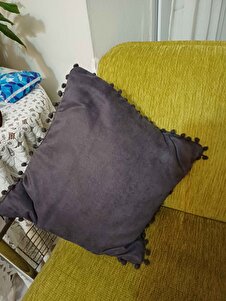 Antrasit Minik Ponponlu Yumuşak Dokulu Kare Kırlent Kılıfı Iskandinav, Bohem,düz, Sade Antrasit Minik Ponponlu Yumuşak Dokulu Kare Kırlent Kılıfı Iskandinav, Bohem,düz, Sade PMSP431000 40 x 40