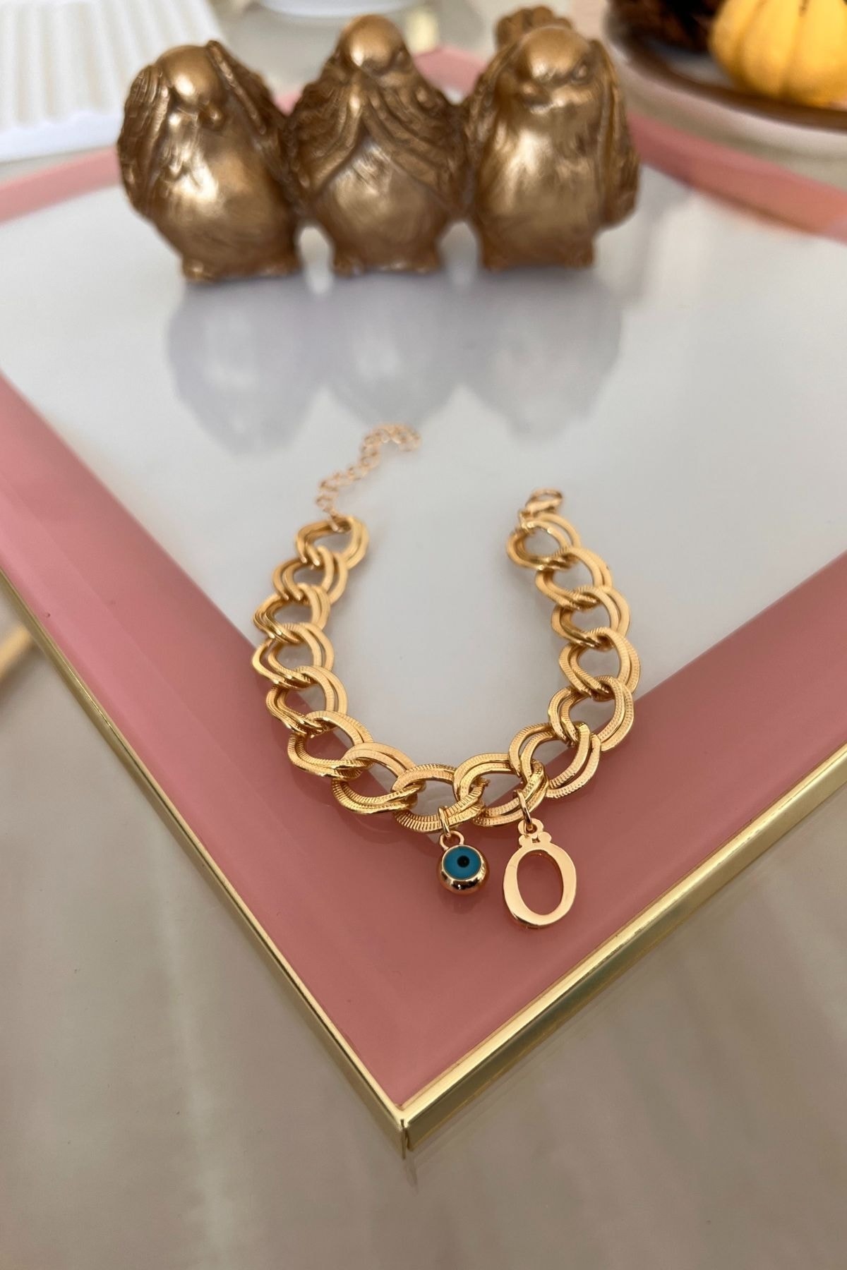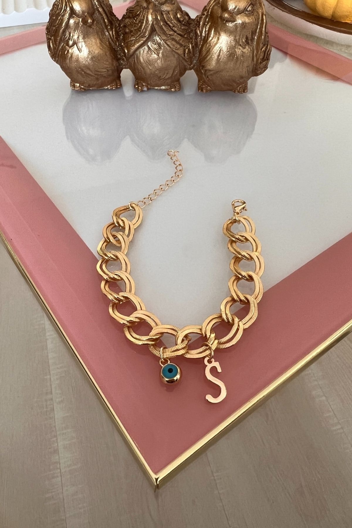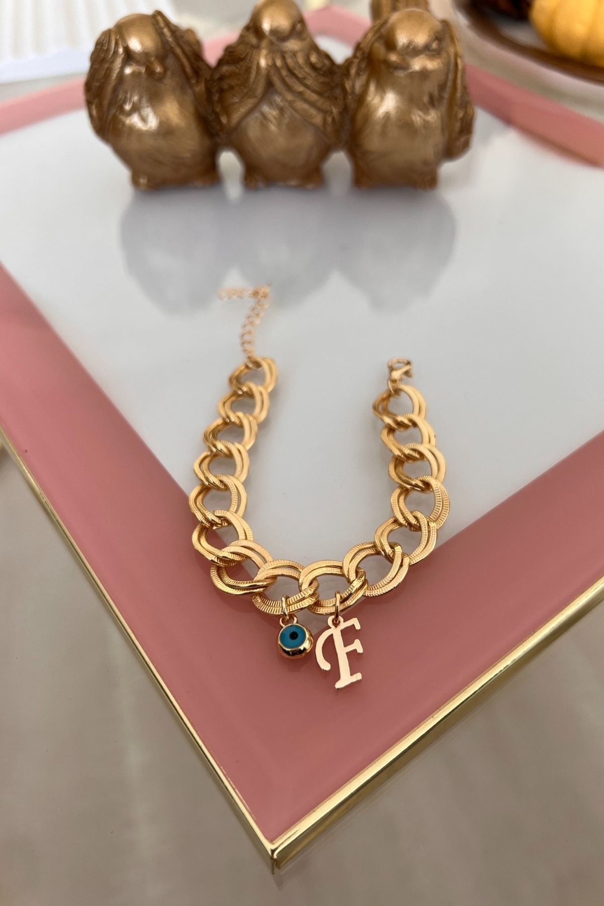 N Harfli Ve Nazar Sallantılı Ataş Zincirli Bileklik N Harfli Ve Nazar Sallantılı Ataş Zincirli Bileklik TB22-TBB-0327 20 cm