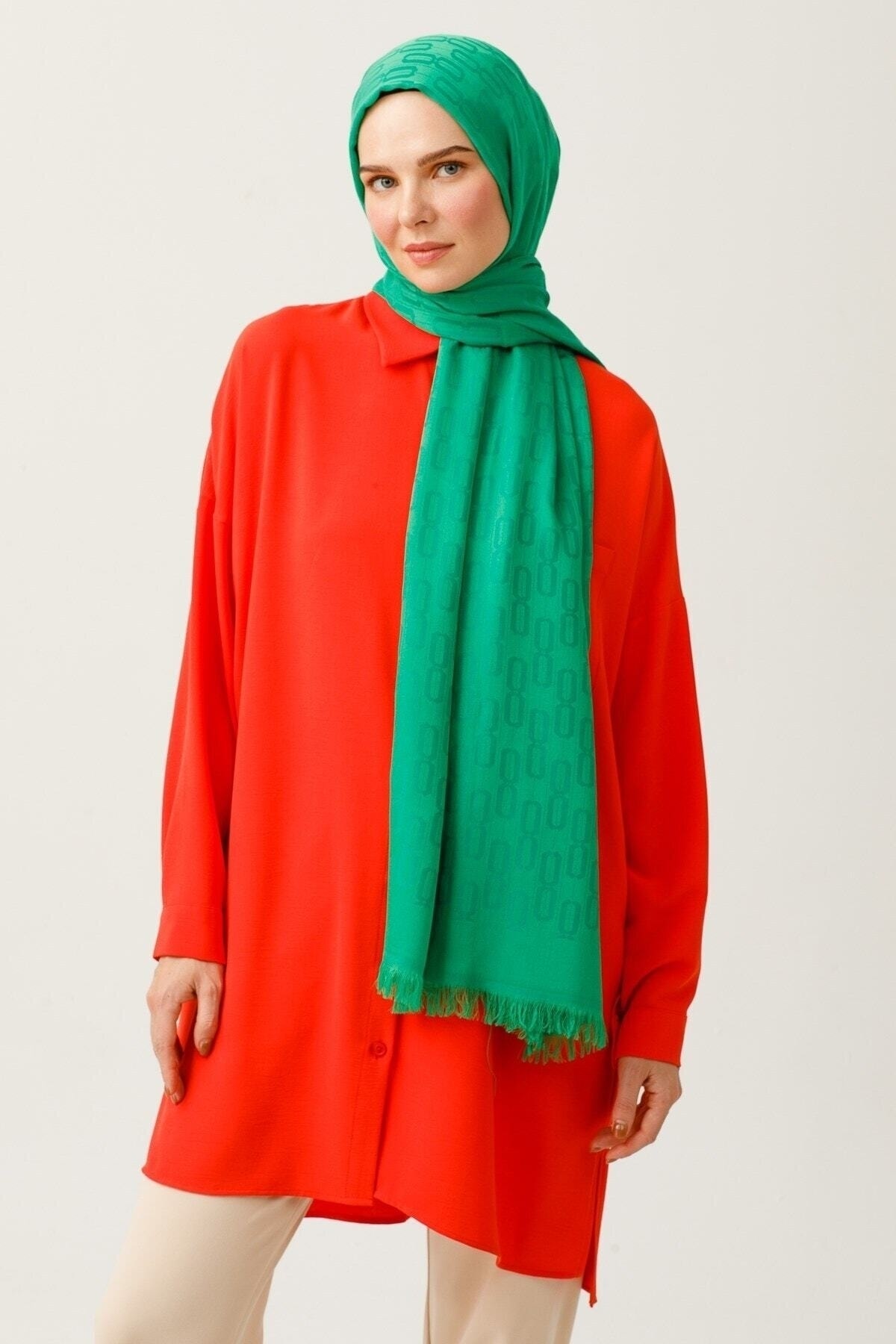 Benetton Yeşili Üçgen Desen Pamuk Jakar Şal Benetton Yeşili Üçgen Desen Pamuk Jakar Şal JKRMNC0009 75 x 185