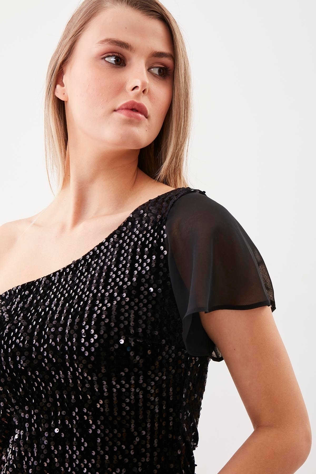 Tek Omuz Pul Payet Elbise Beden: L Tek Omuz Pul Payet Elbise Beden: L 22-4509 L