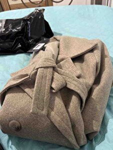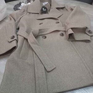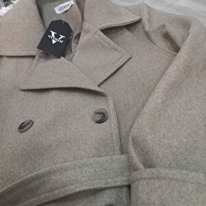 Önü Düğmeli Kuşaklı Kısa Kaşe Kaban Önü Düğmeli Kuşaklı Kısa Kaşe Kaban 22-1156 XL