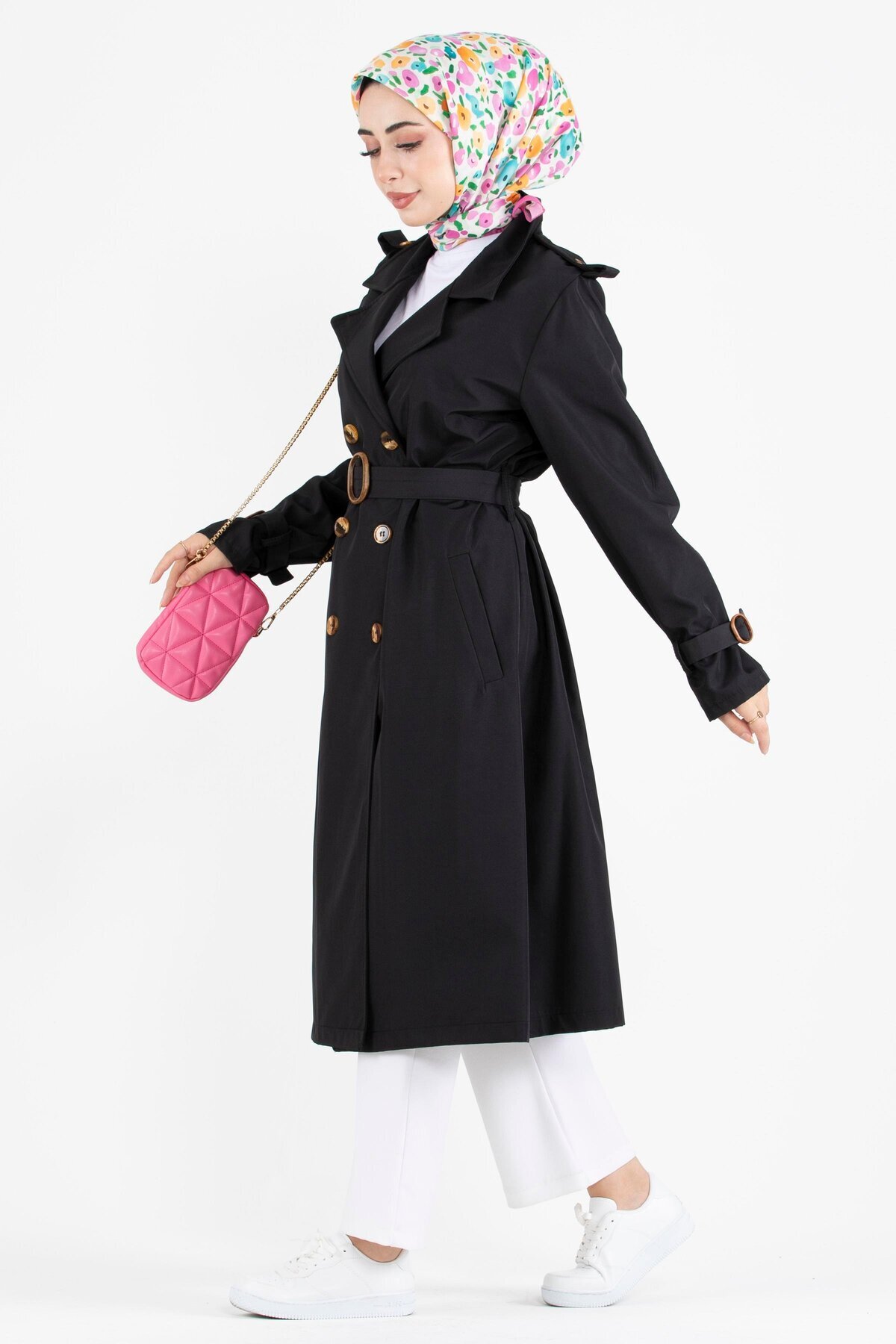Omuzu Apoletli Trençkot-Siyah Omuzu Apoletli Trençkot-Siyah SVT2410 42