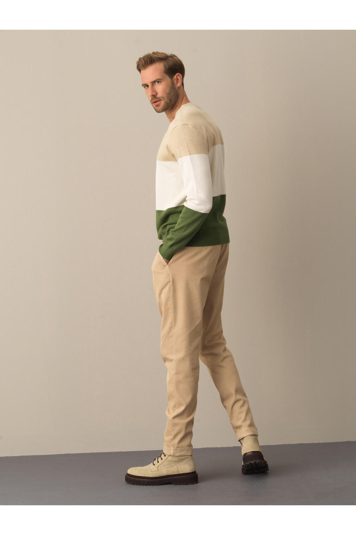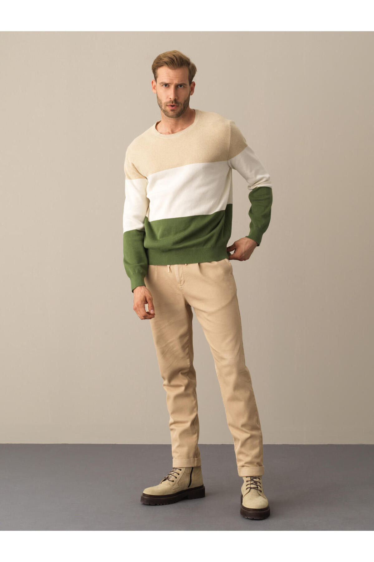 Erkek Dyeşil %100 Pamuk Regular Fit Çizgili Kazak Erkek Dyeşil %100 Pamuk Regular Fit Çizgili Kazak 801672 2XL