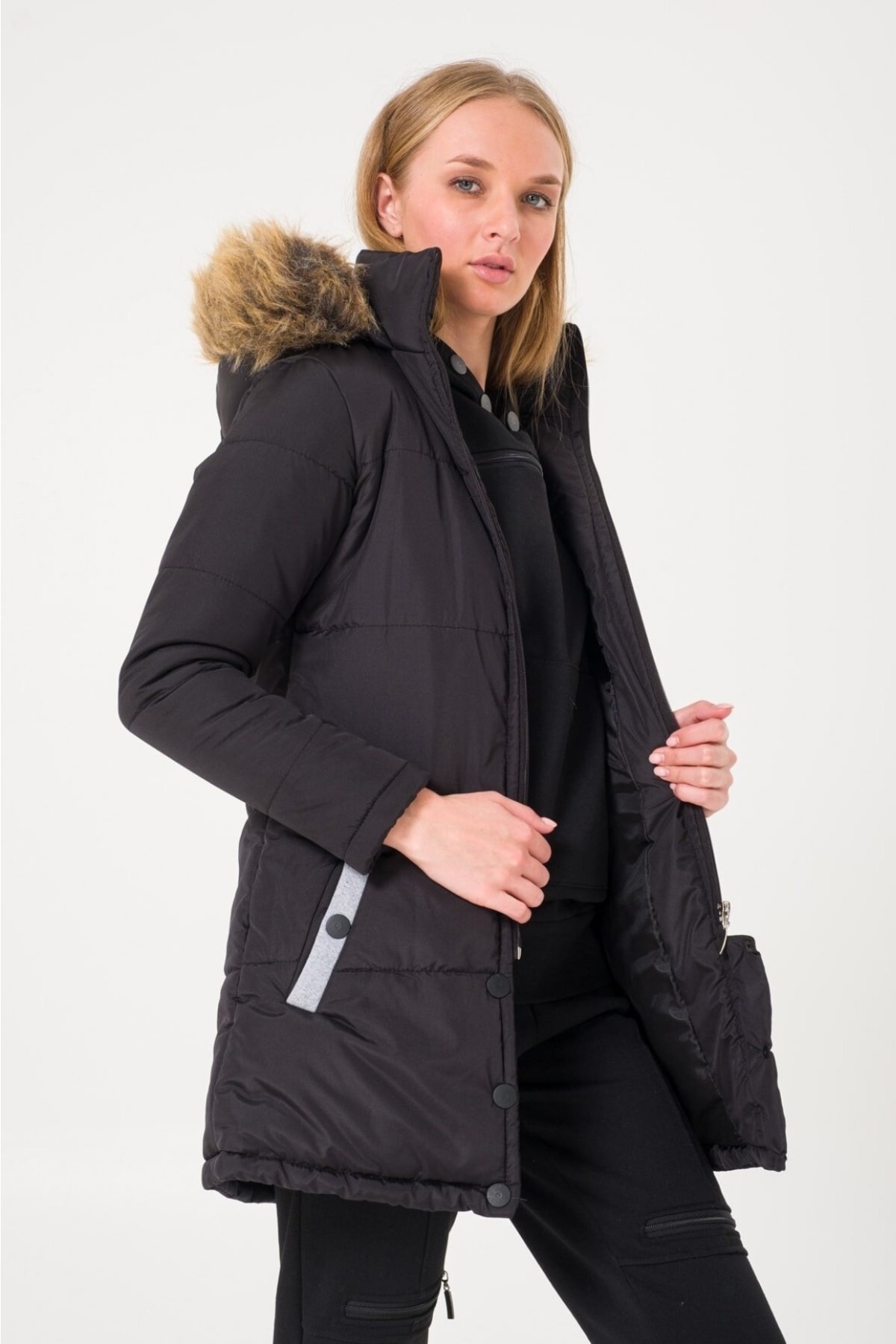 Kışlık Kapüşonlu Uzun Kadın Şişme Mont Kışlık Kapüşonlu Uzun Kadın Şişme Mont tr805siyah6 2XL