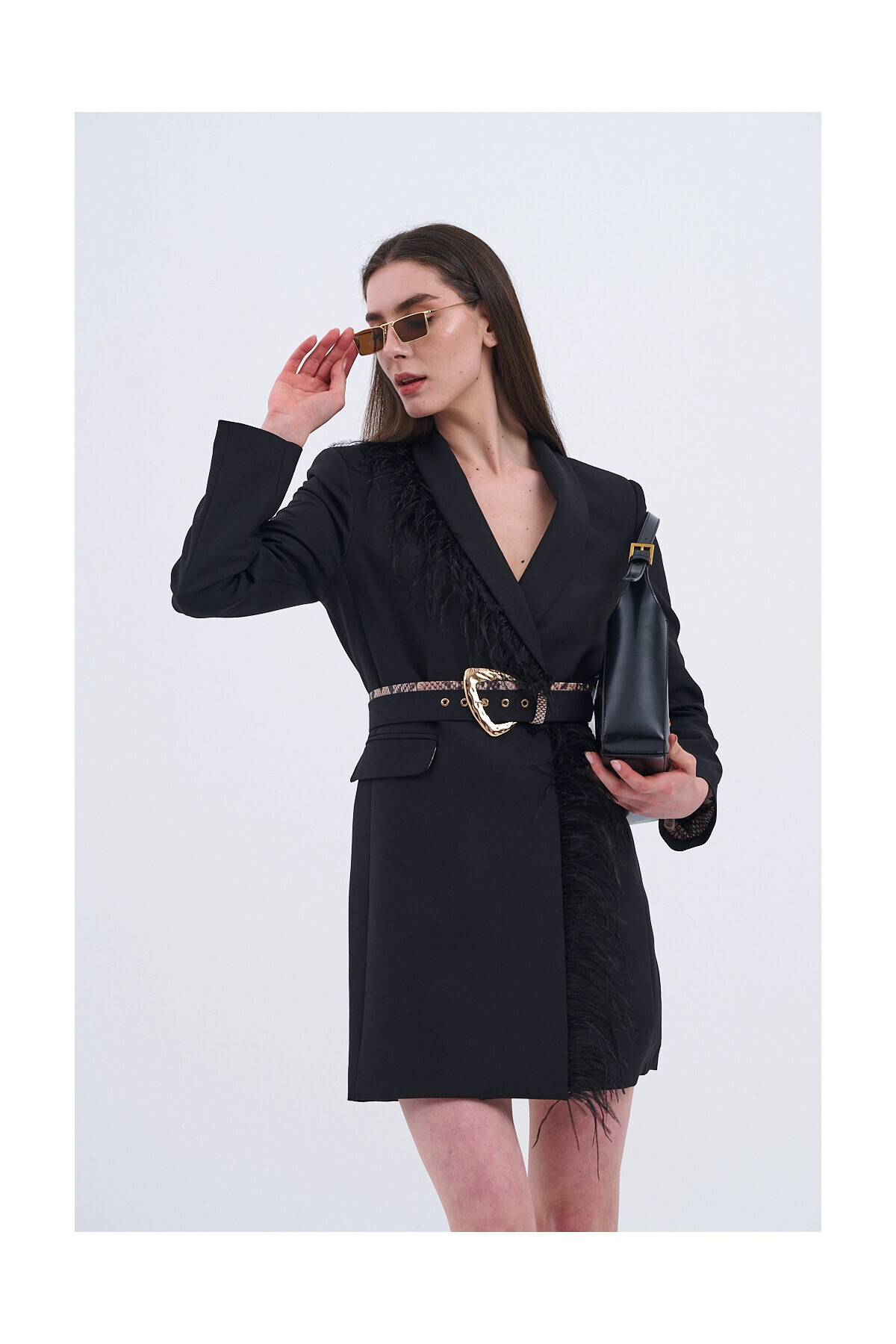 Modatalika Kadın Tasarım Suni Deri Kemerli Kısa Elbise Modatalika Kadın Tasarım Suni Deri Kemerli Kısa Elbise FVR33058 42