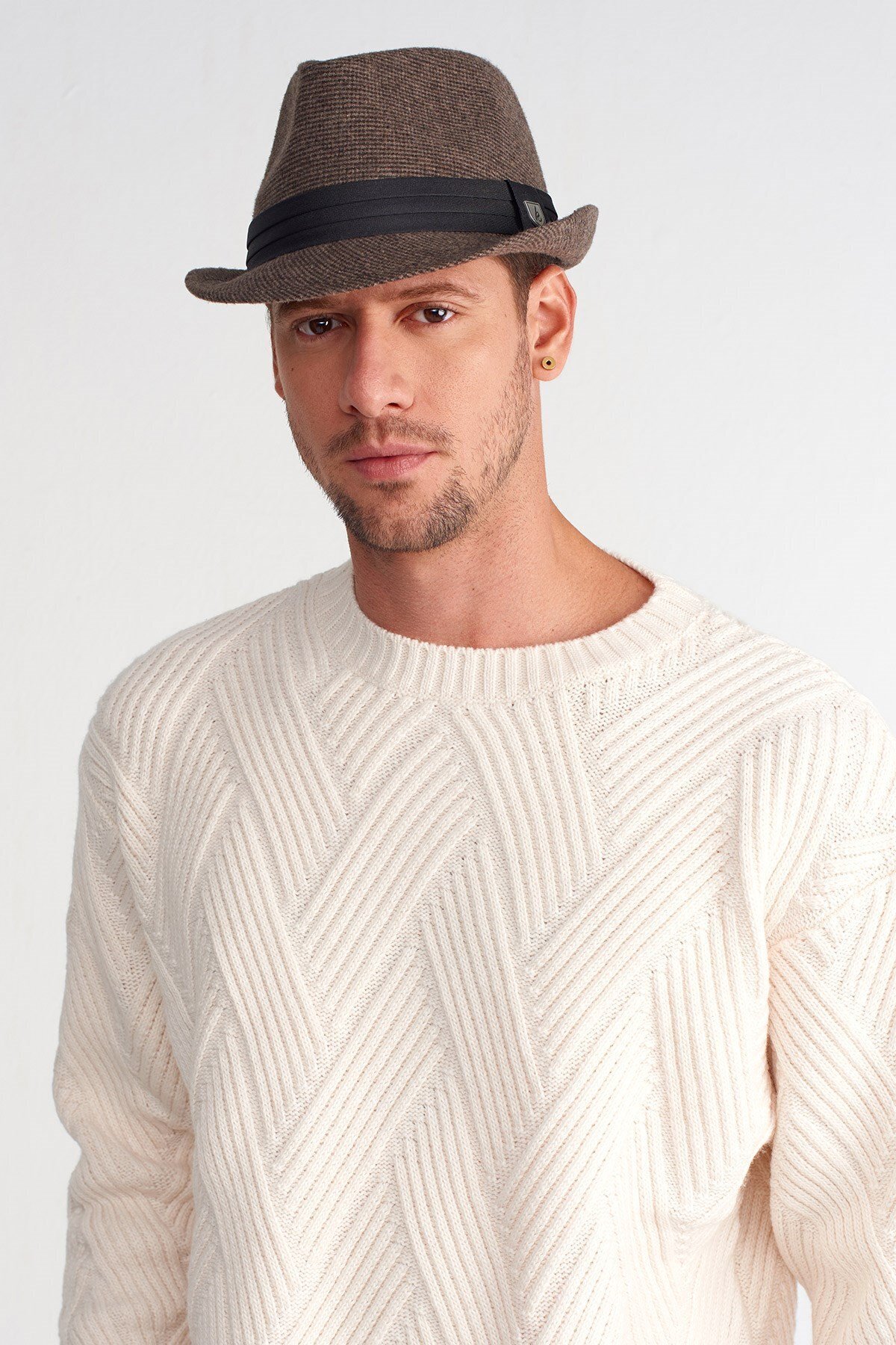 Erkek Bantlı Yün Fötr Şapka - Kahve Erkek Bantlı Yün Fötr Şapka - Kahve KLH7287 تک سایز