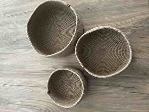 3'lü Jüt Sığ Hasır Sepet, %100 El Yapımı, Hasır, Jüt, Pamuk, Vegan 3'lü Jüt Sığ Hasır Sepet, %100 El Yapımı, Hasır, Jüt, Pamuk, Vegan OpiaKPS31 تک سایز