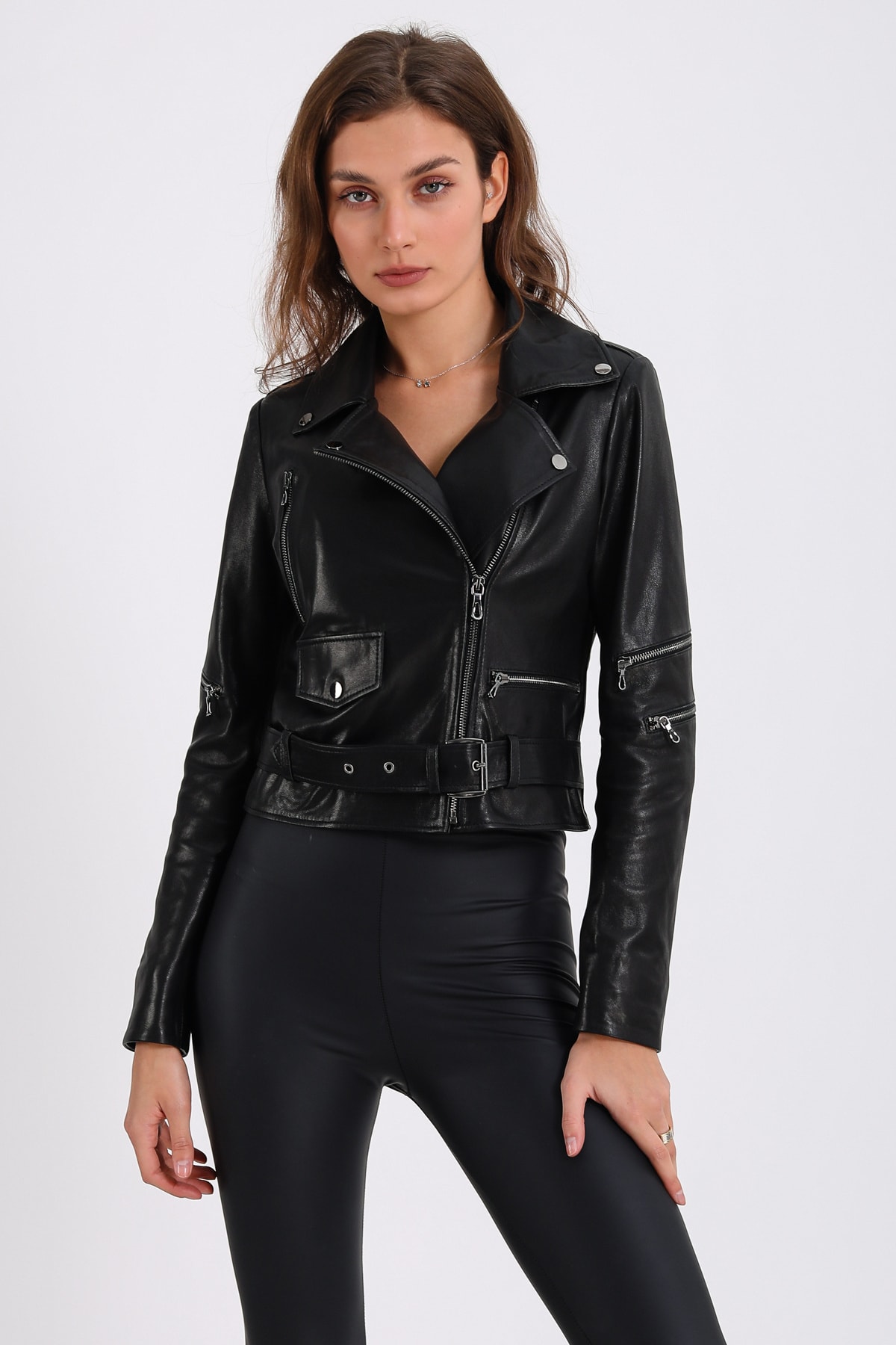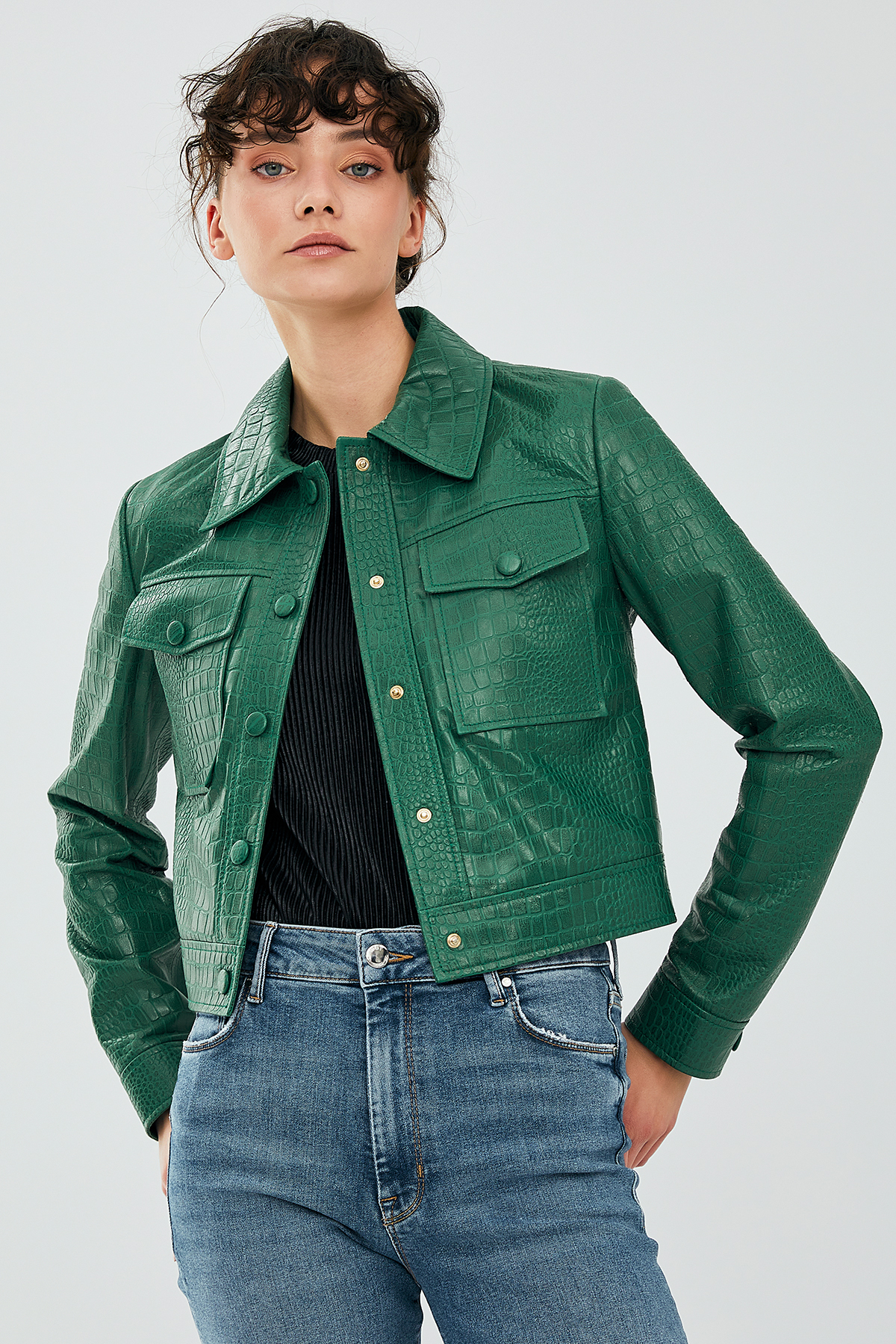 Yeşil Kuzu Derisi Biker Ceket Yeşil Kuzu Derisi Biker Ceket A-483 3XL