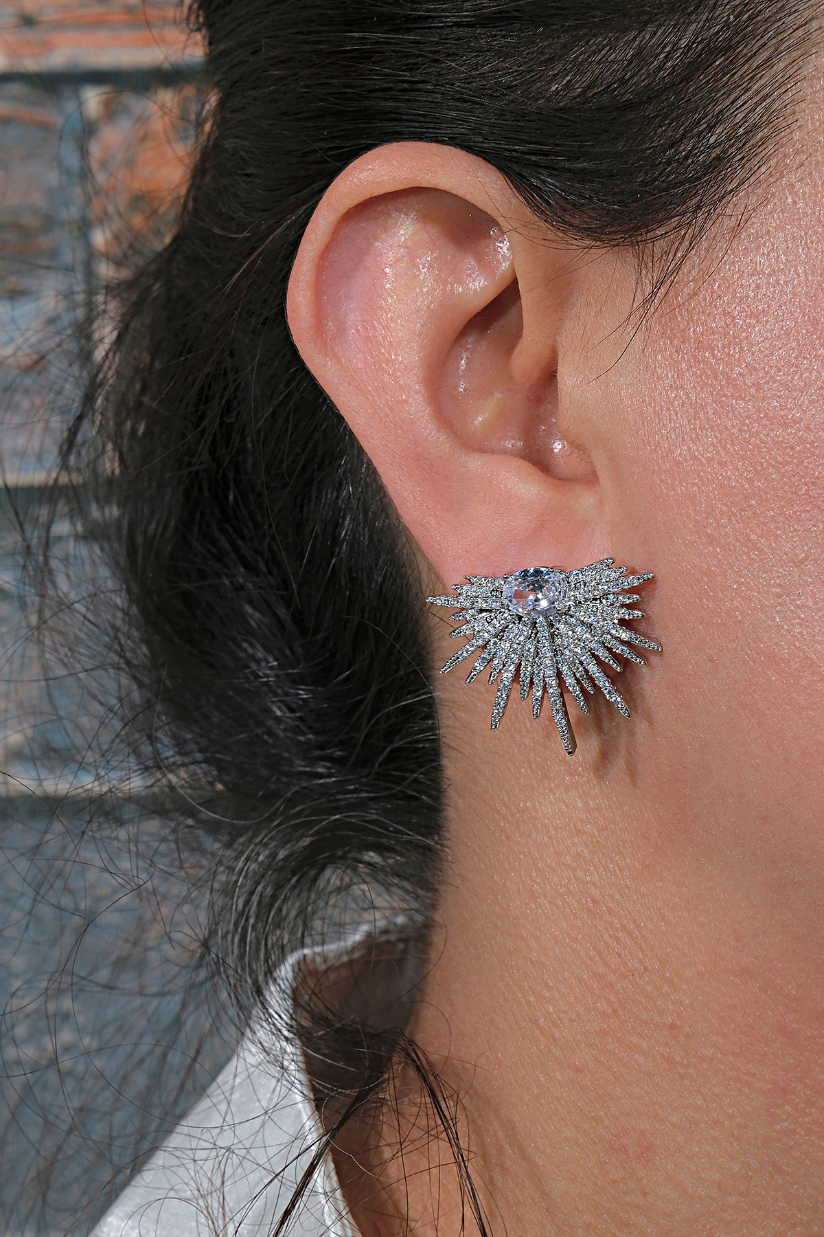 Bayan Geometrik Beyaz Küpe PS1211 Bayan Geometrik Beyaz Küpe PS1211 تک سایز