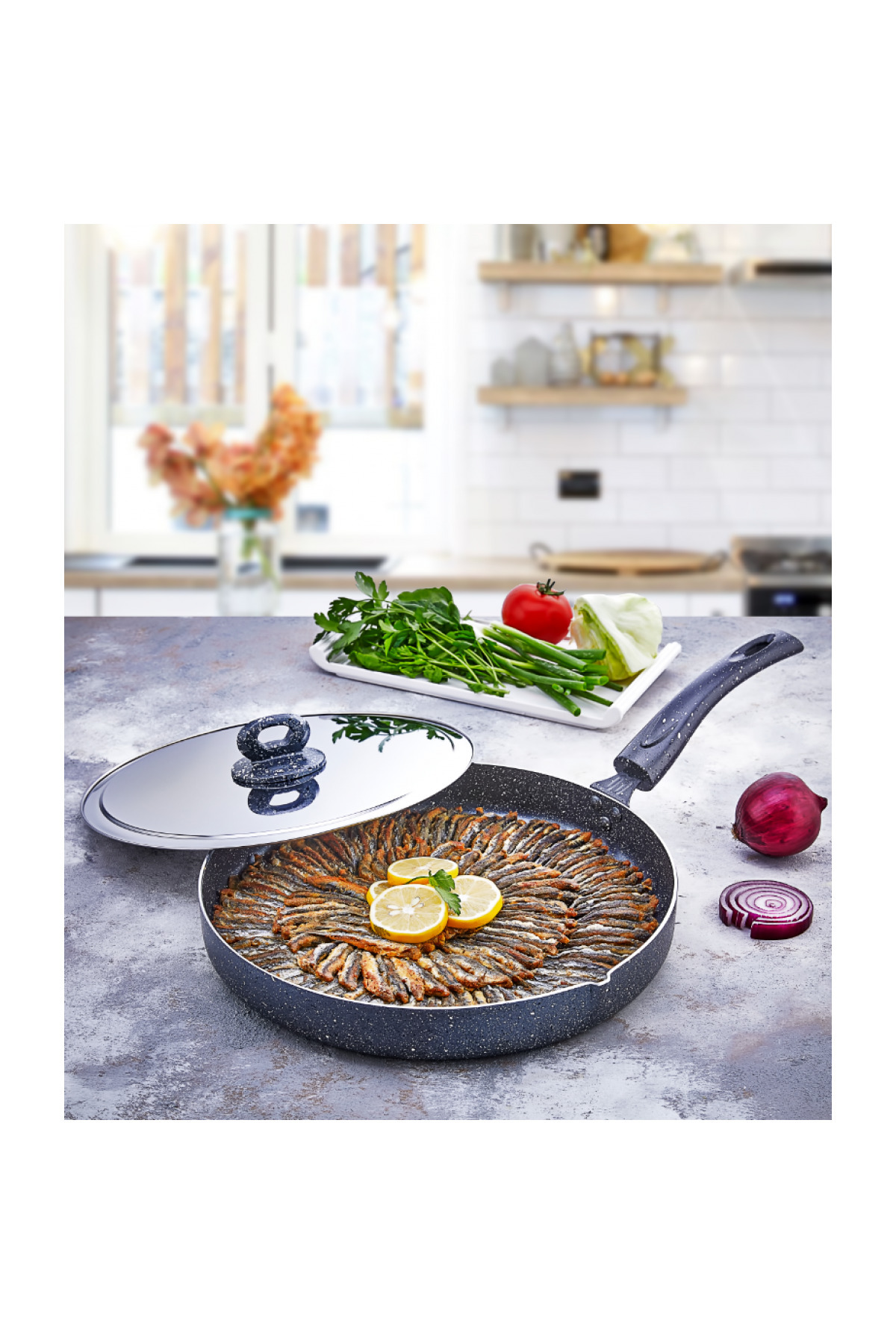 Oms Granit 34 Cm Metal Kapaklı Hamsi Tavası Oms Granit 34 Cm Metal Kapaklı Hamsi Tavası OMS-3222-34-GRI تک سایز