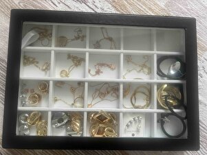 Bölmeli Takı Kutusu 20 Li Siyah Içi Beyaz Bölmeli Takı Kutusu 20 Li Siyah Içi Beyaz KTA506 تک سایز