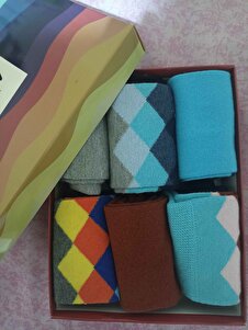 Erkek Özel Hediye Kutulu Çok Renkli Desenli 6'lı Soket Çorap Erkek Özel Hediye Kutulu Çok Renkli Desenli 6'lı Soket Çorap 4A2523106P03 40-46