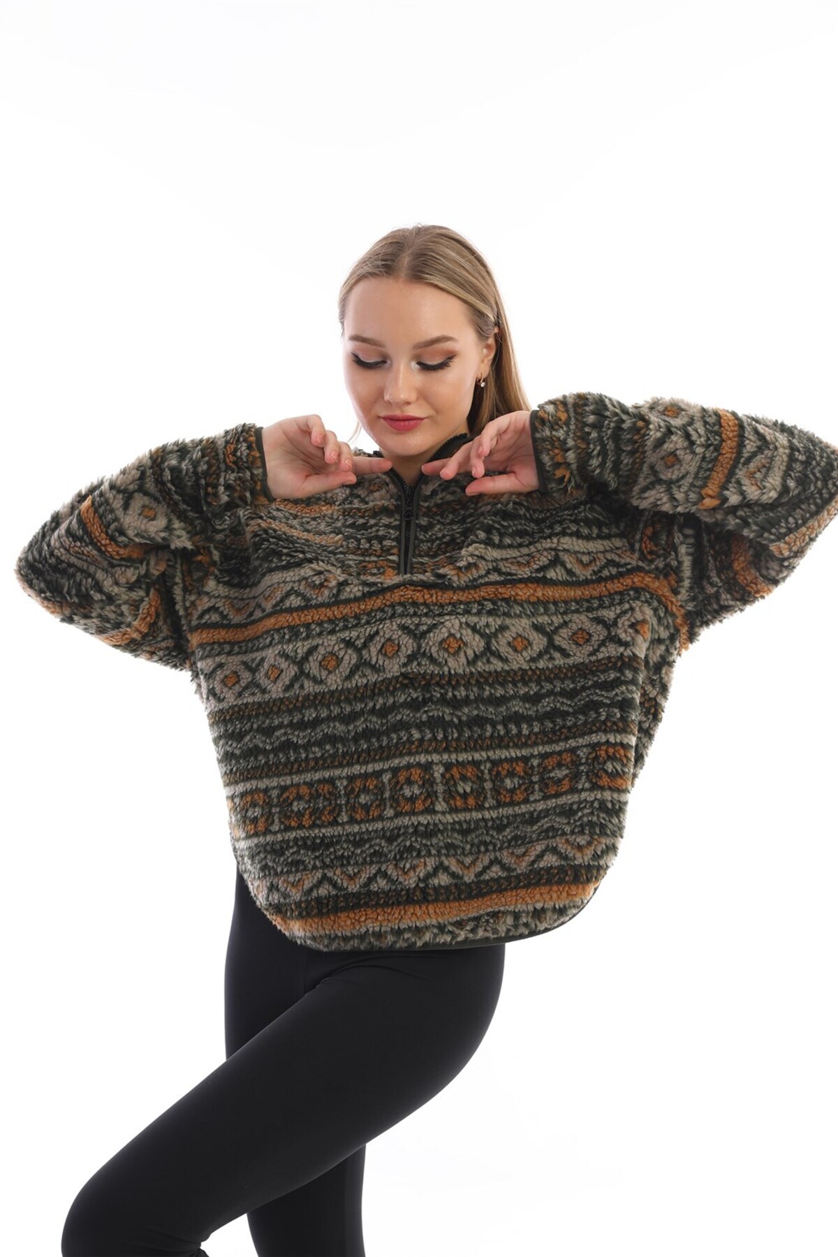 Peluş Kadın Sweatshirt Kapüşonlu Bol Kesim Peluş Kadın Sweatshirt Kapüşonlu Bol Kesim NY5161 XL
