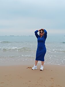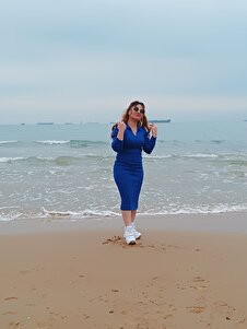 Saks Mavi Si Fitilli Likralı Polo Yaka Triko Elbise Saks Mavi Si Fitilli Likralı Polo Yaka Triko Elbise Trkelb02 Standart