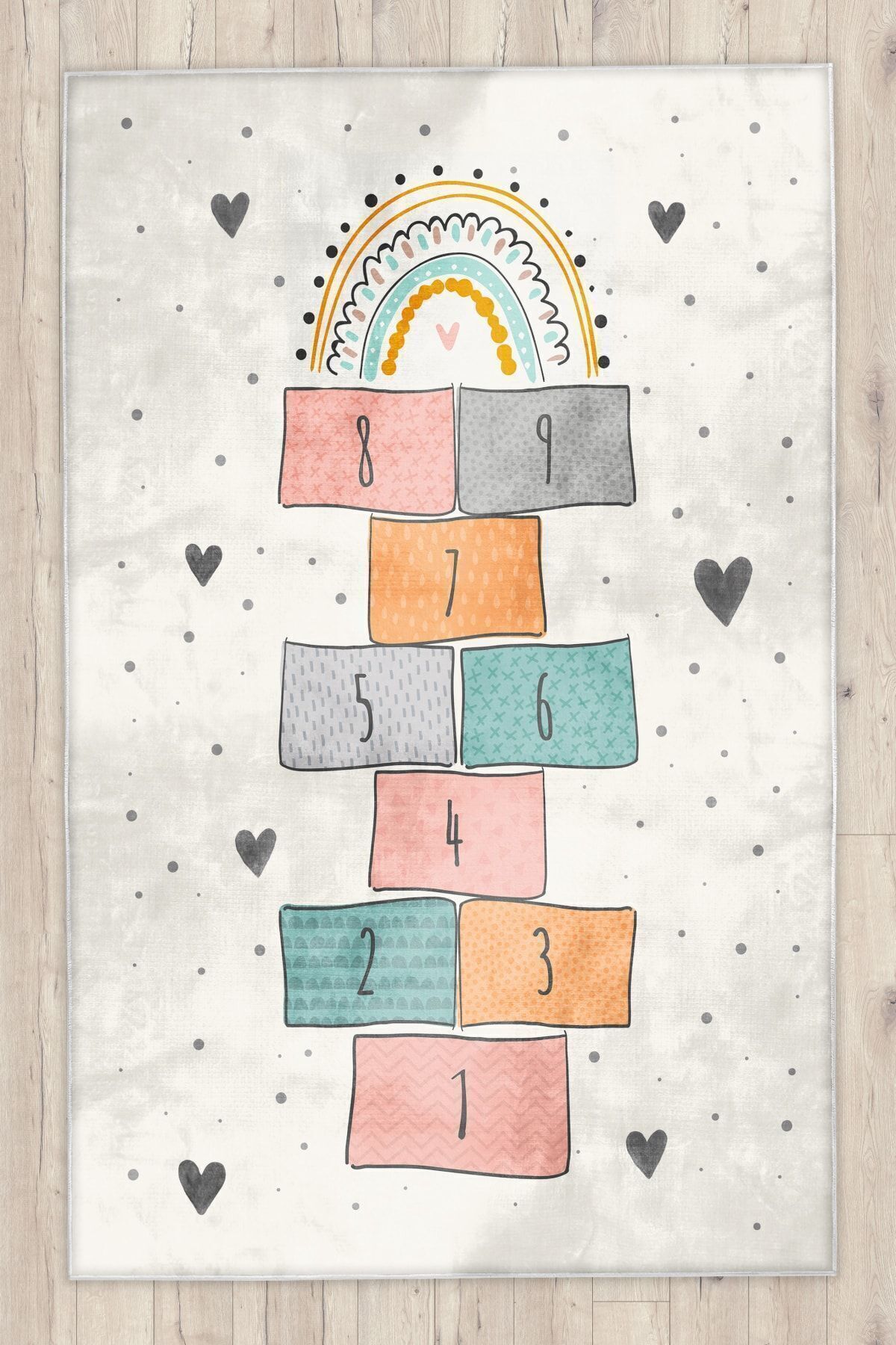 Seksek Kalpli Bambu Çocuk Odası Halısı Seksek Kalpli Bambu Çocuk Odası Halısı BB26-H 160 x 230