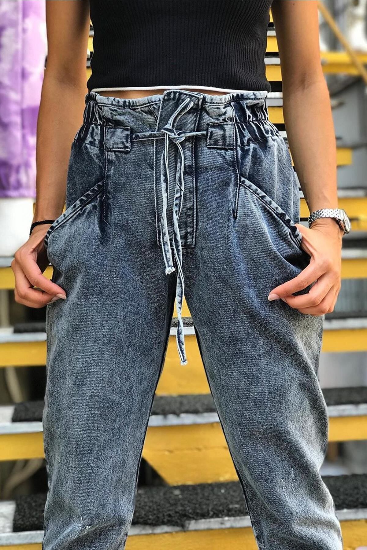 Kadın Lacivert Yüksek Bel Beli Lastikli Mom Jeans Kot Pantolon Kadın Lacivert Yüksek Bel Beli Lastikli Mom Jeans Kot Pantolon PRA-3157056-607913 40