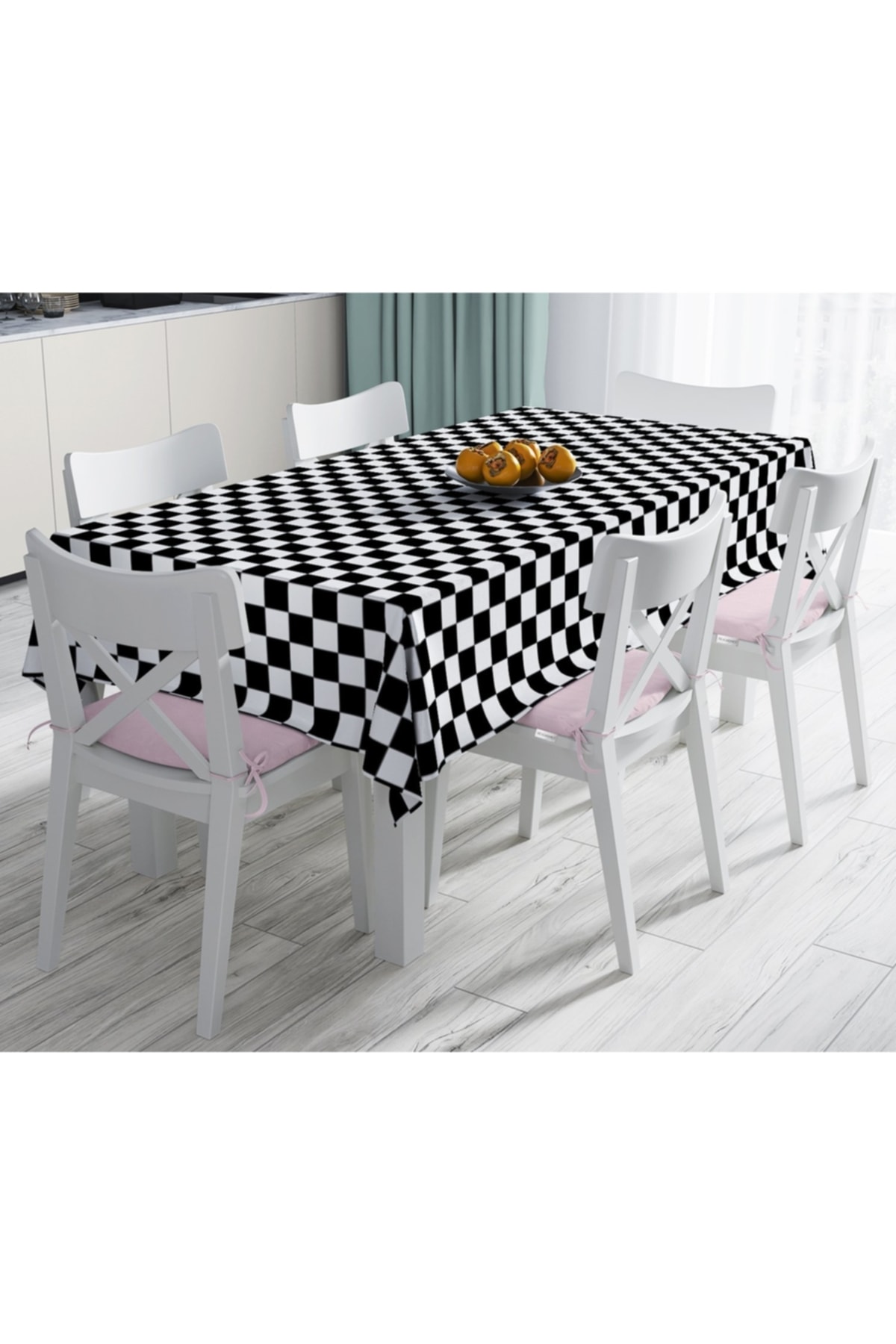 Siyah Beyaz Ekose Desenli Dekoratif Leke Tutmaz Masa Örtüsü 140x260 cm Siyah Beyaz Ekose Desenli Dekoratif Leke Tutmaz Masa Örtüsü 140x260 cm Masa2026 تک سایز