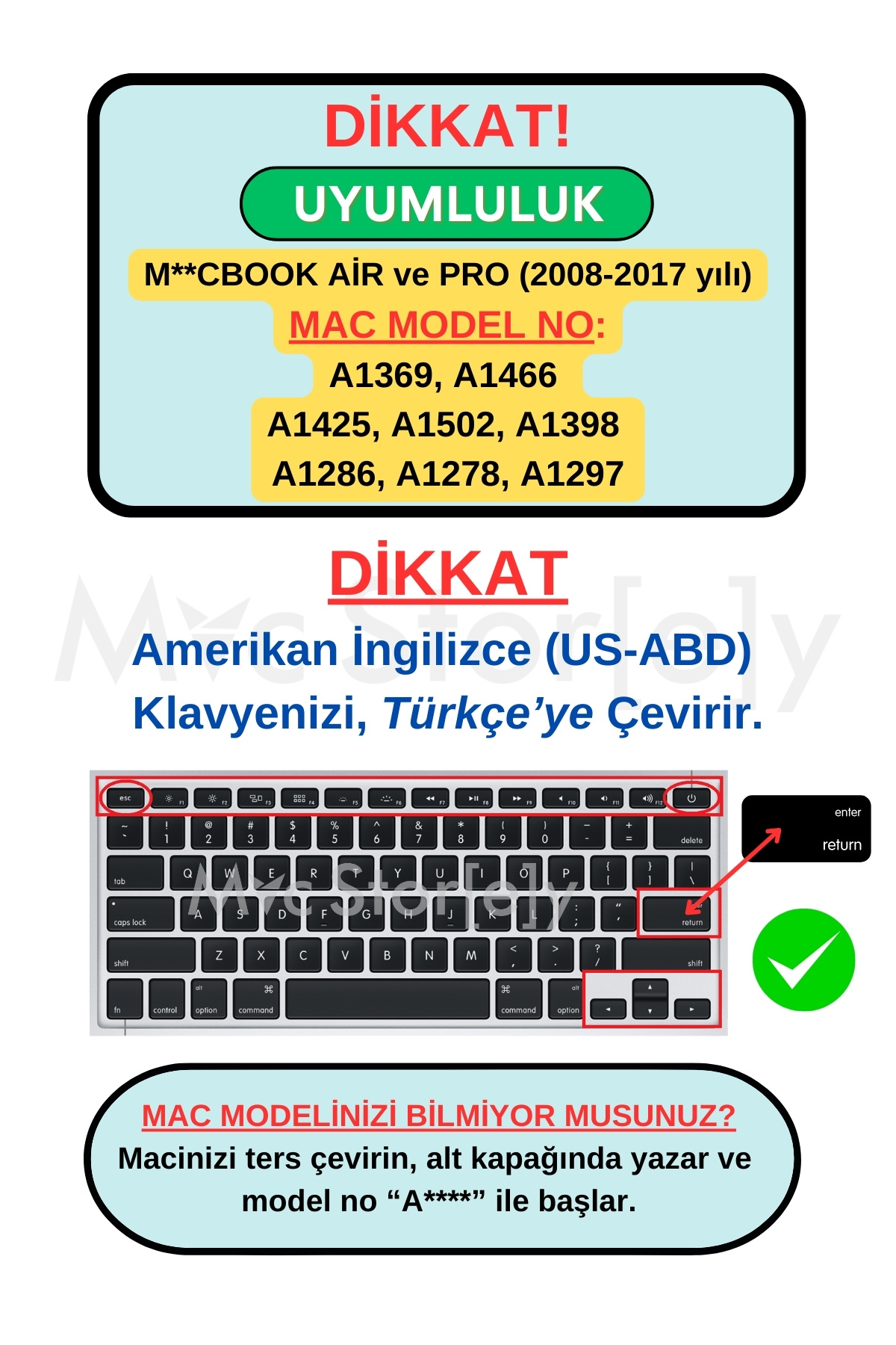Macbook Kılıf Air Pro Klavye Koruyucu Türkçe Baskılı (US TO TR) (ESKİ USB'Lİ MODEL 2008-2017) Dazzle Macbook Kılıf Air Pro Klavye Koruyucu Türkçe Baskılı (US TO TR) (ESKİ USB'Lİ MODEL 2008-2017) Dazzle 001005 تک سایز