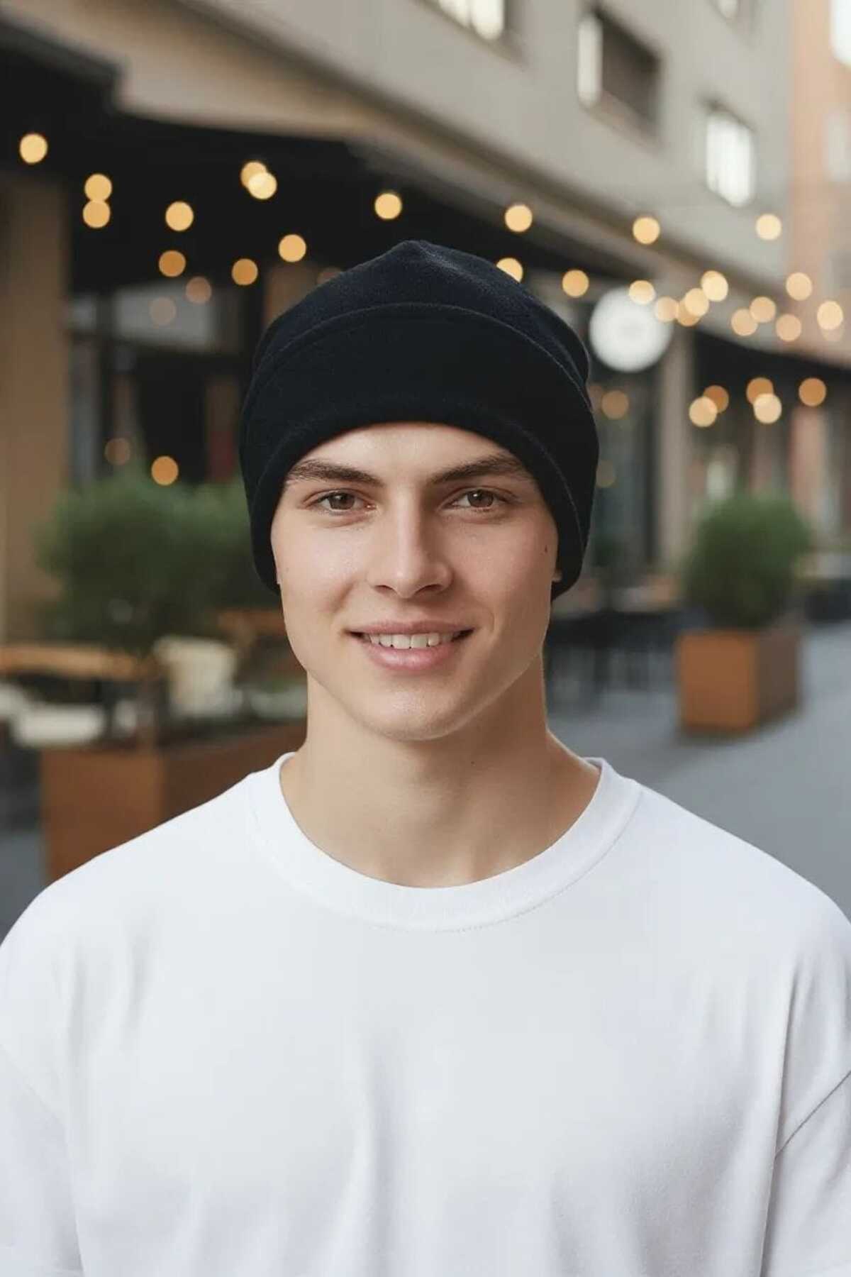 Erkek Siyah, Ip Detaylı Özel Tasarım 4 Mevsim Şapka Bere Buff -ultra Yumuşak Doğal Penye Kumaş Erkek Siyah, Ip Detaylı Özel Tasarım 4 Mevsim Şapka Bere Buff -ultra Yumuşak Doğal Penye Kumaş BG69024 Standart