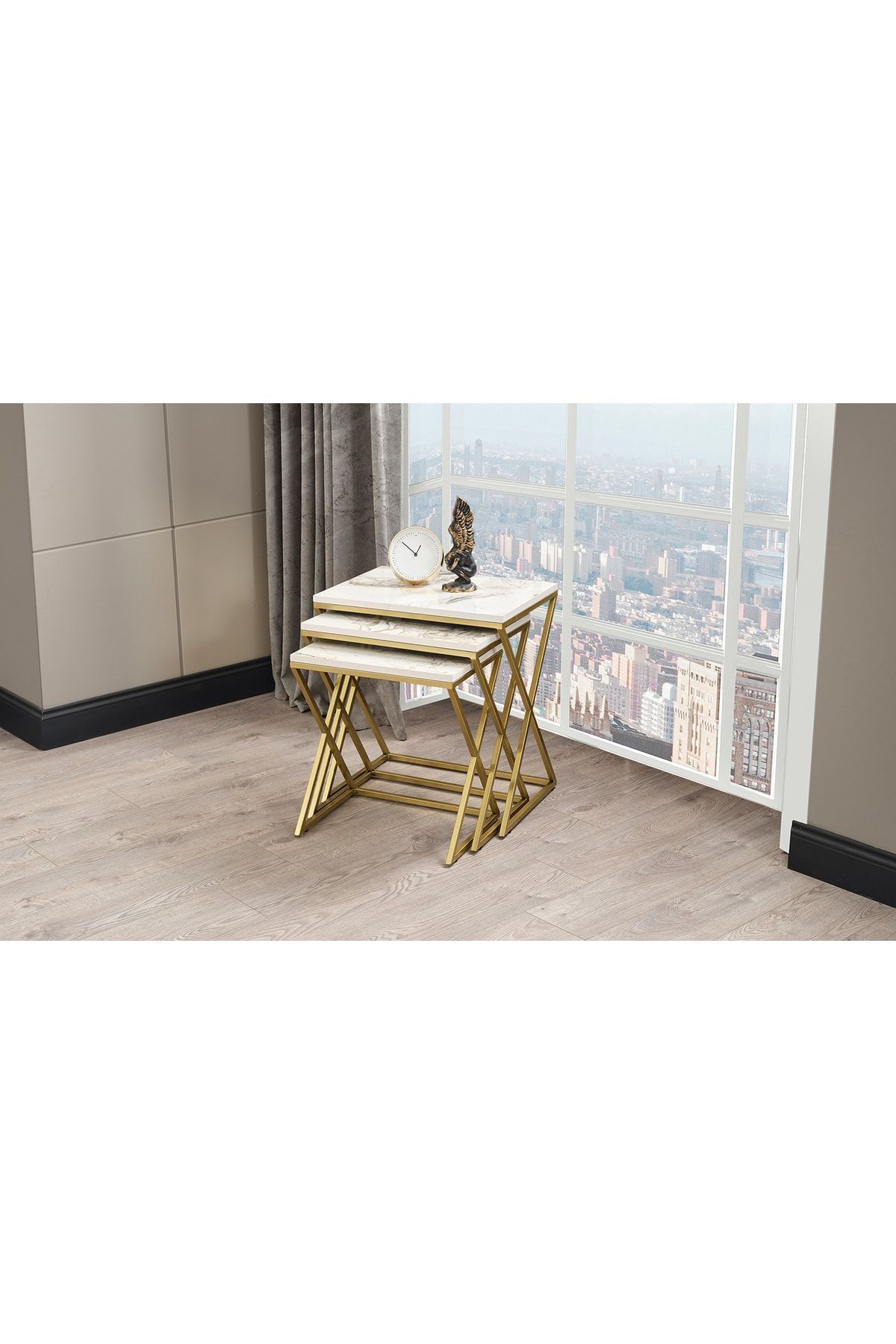 Vienna Gold Metal Ayaklı,mermer Desenli Mdf'li Zigon Sehpa Vienna Gold Metal Ayaklı,mermer Desenli Mdf'li Zigon Sehpa vienna01 تک سایز