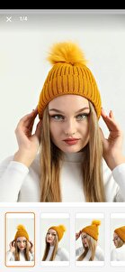 Kadın Kışlık Hardal Ponponlu Triko Bere Kadın Kışlık Hardal Ponponlu Triko Bere EIG-BR4 Standart