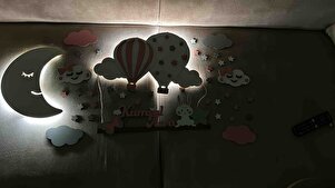 Balon Ve Ay - Ikili Set Işıklı Ahşap Bebek Kapı Ve Duvar Süsü - Pembe-beyaz Balon Ve Ay - Ikili Set Işıklı Ahşap Bebek Kapı Ve Duvar Süsü - Pembe-beyaz uniqraftbalonluveay 43 x 45