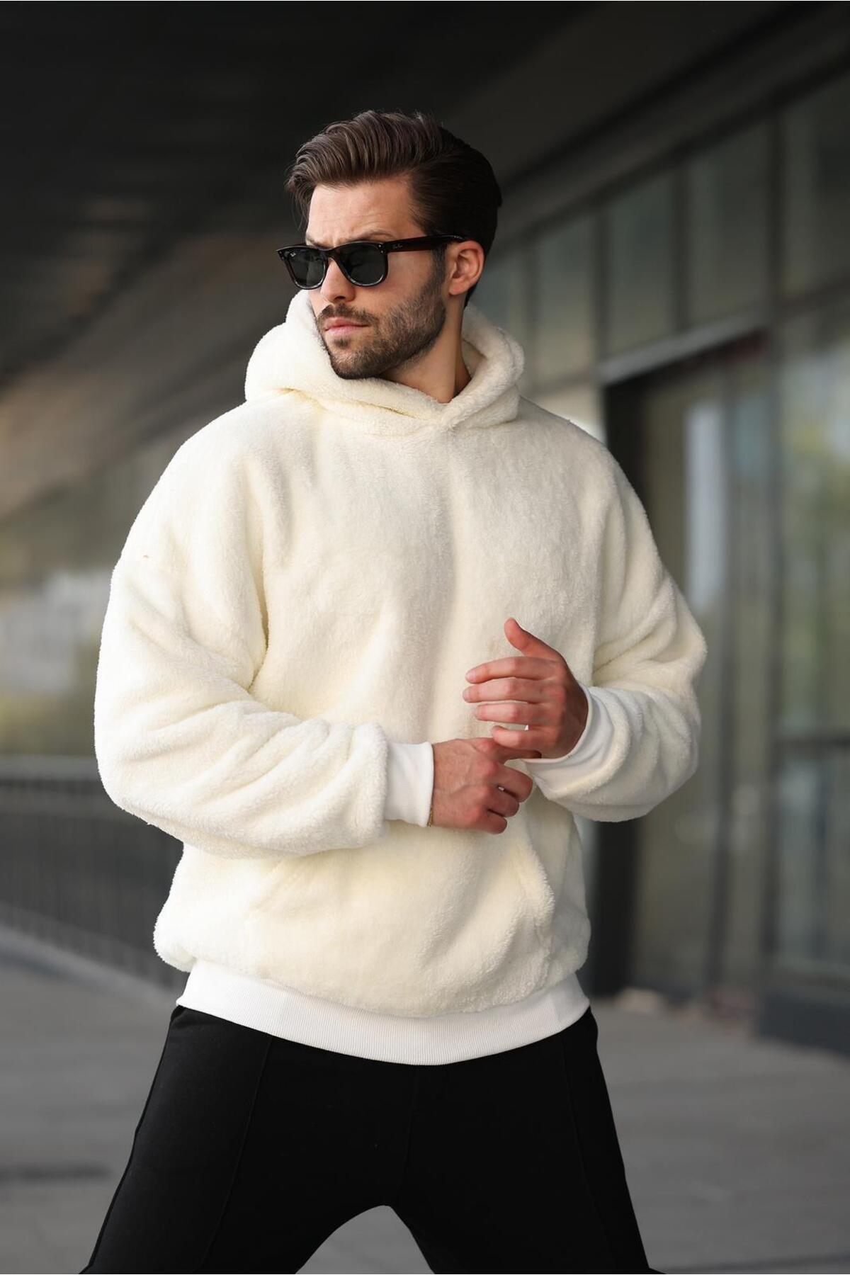 Ekru Peluş Kapüşonlu Erkek Sweatshirt 6050 Ekru Peluş Kapüşonlu Erkek Sweatshirt 6050 XL