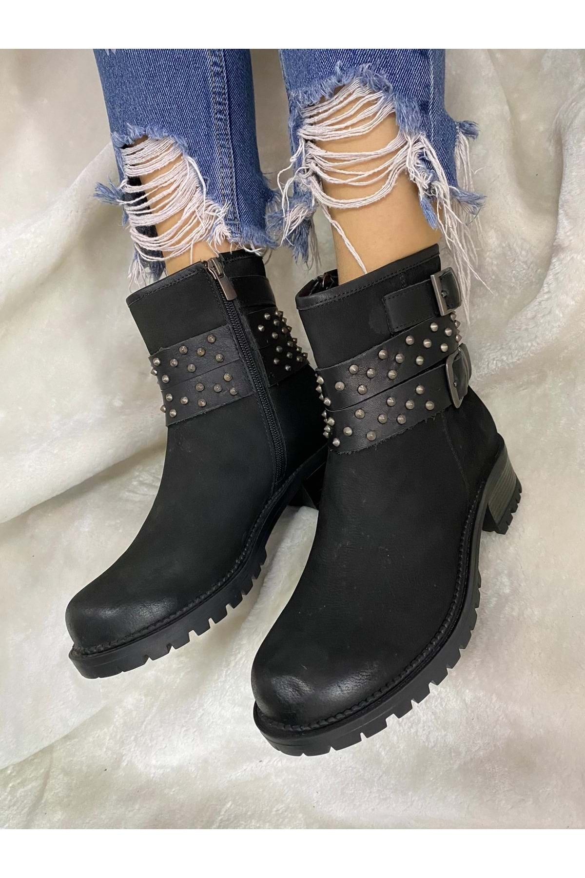 Çiğdem Gerçek Crayz Deri Siyah Zımbalı Kısa Bot (LYDWST B17) Çiğdem Gerçek Crayz Deri Siyah Zımbalı Kısa Bot (LYDWST B17) ST01510 40