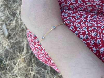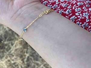 Nazar Bileklik Mavi Göz Boncuğu Sarı Gold Yuvarlak 925 Ayar Gümüş Zincir Bileklik Nazar Bileklik Mavi Göz Boncuğu Sarı Gold Yuvarlak 925 Ayar Gümüş Zincir Bileklik BL-0167 تک سایز