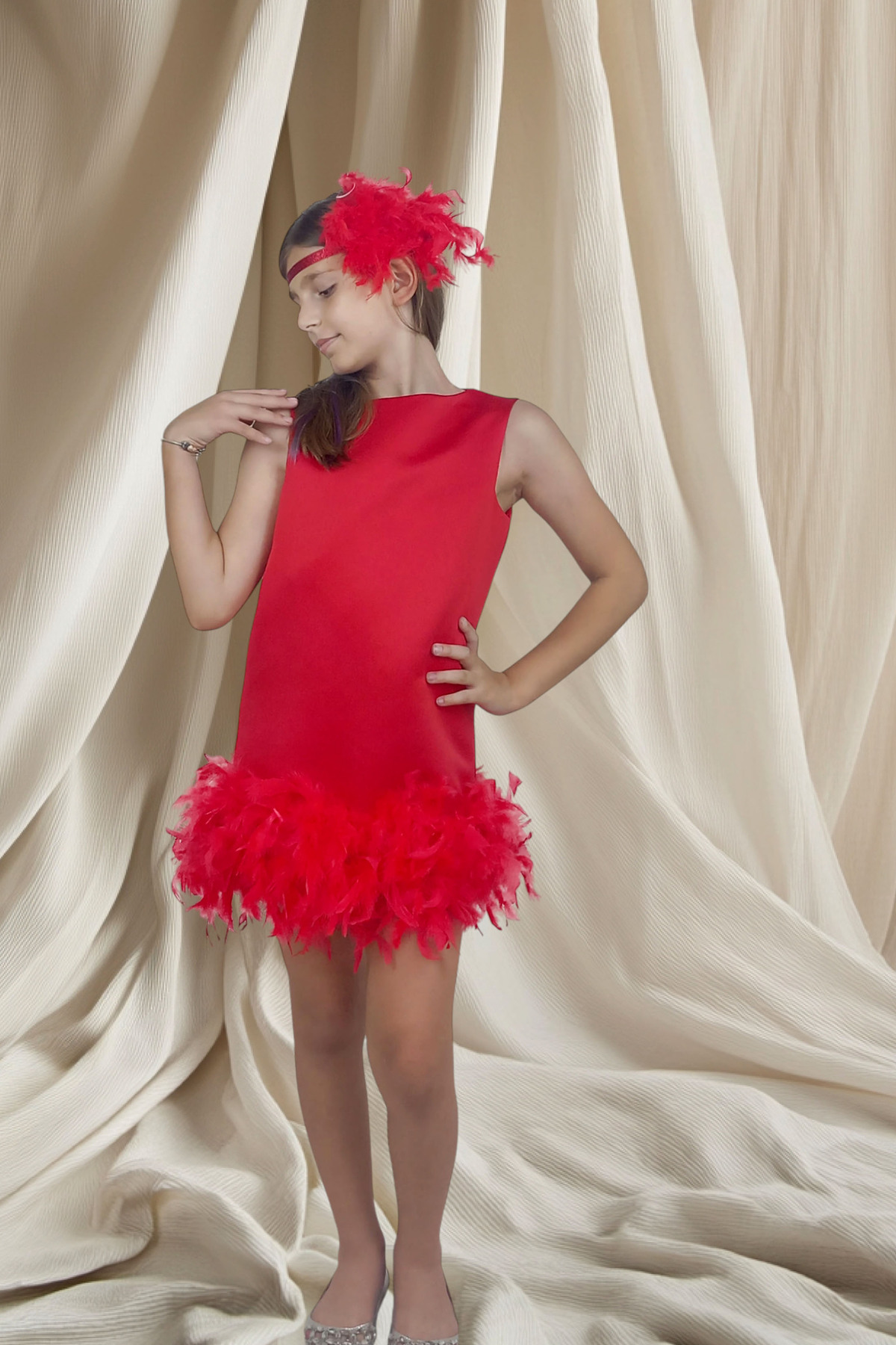 Kız Çocuk Kırmızı Etek Ucu Tüy Detalı Kolsuz Elbise Kız Çocuk Kırmızı Etek Ucu Tüy Detalı Kolsuz Elbise Gİ40016 11 Yaş