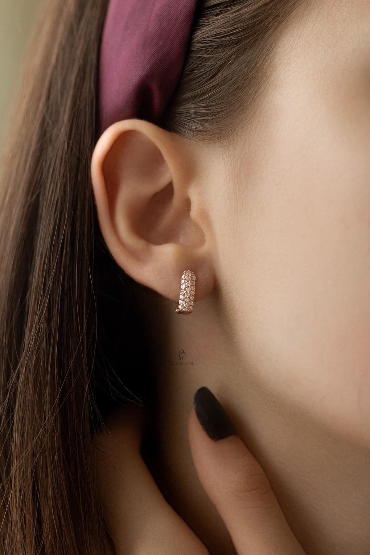 Halka Küpe Baget Rose Pembe 925 Ayar Beyaz Zirkon Taşlı Gümüş Halka Küpe Halka Küpe Baget Rose Pembe 925 Ayar Beyaz Zirkon Taşlı Gümüş Halka Küpe KP-0558 تک سایز