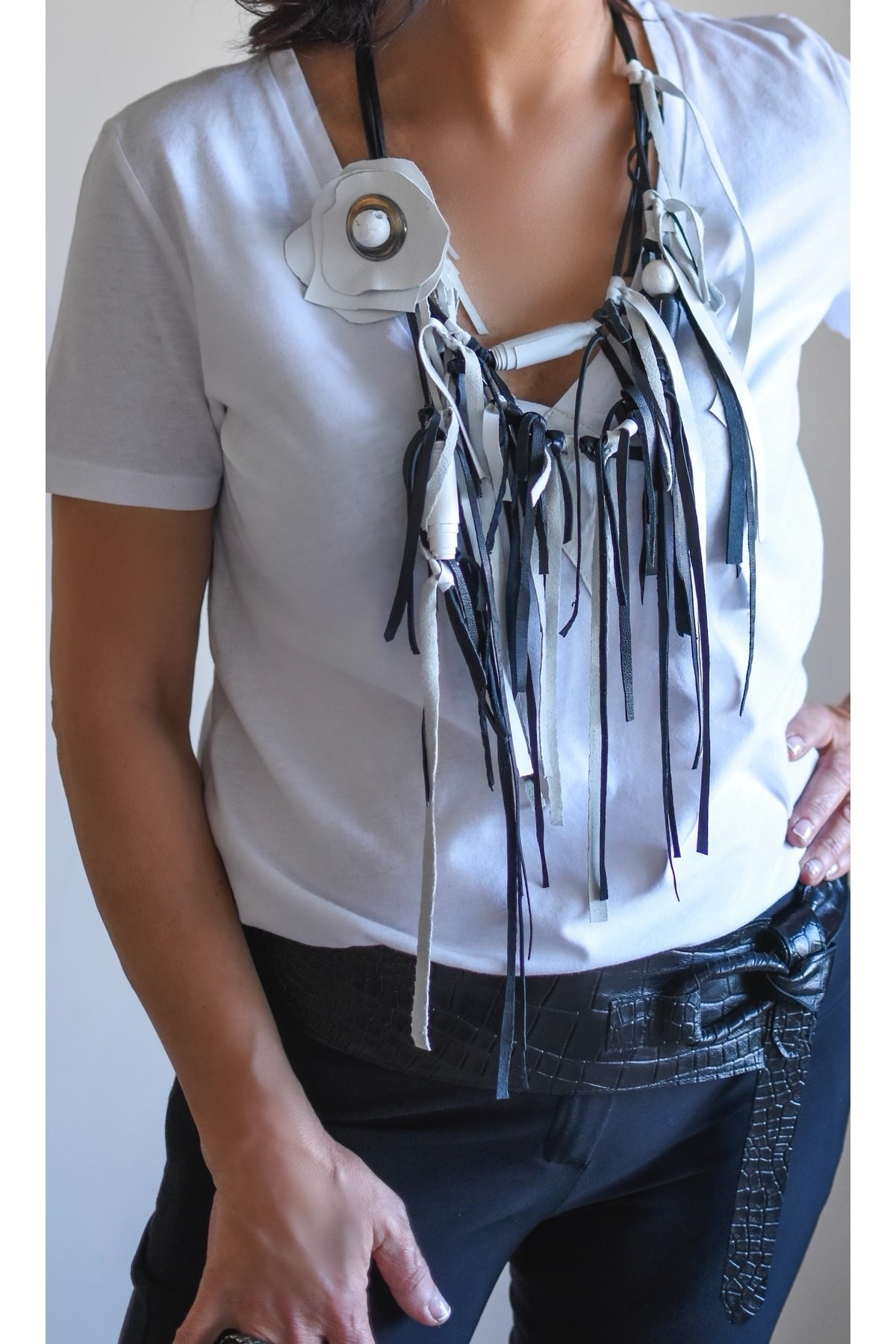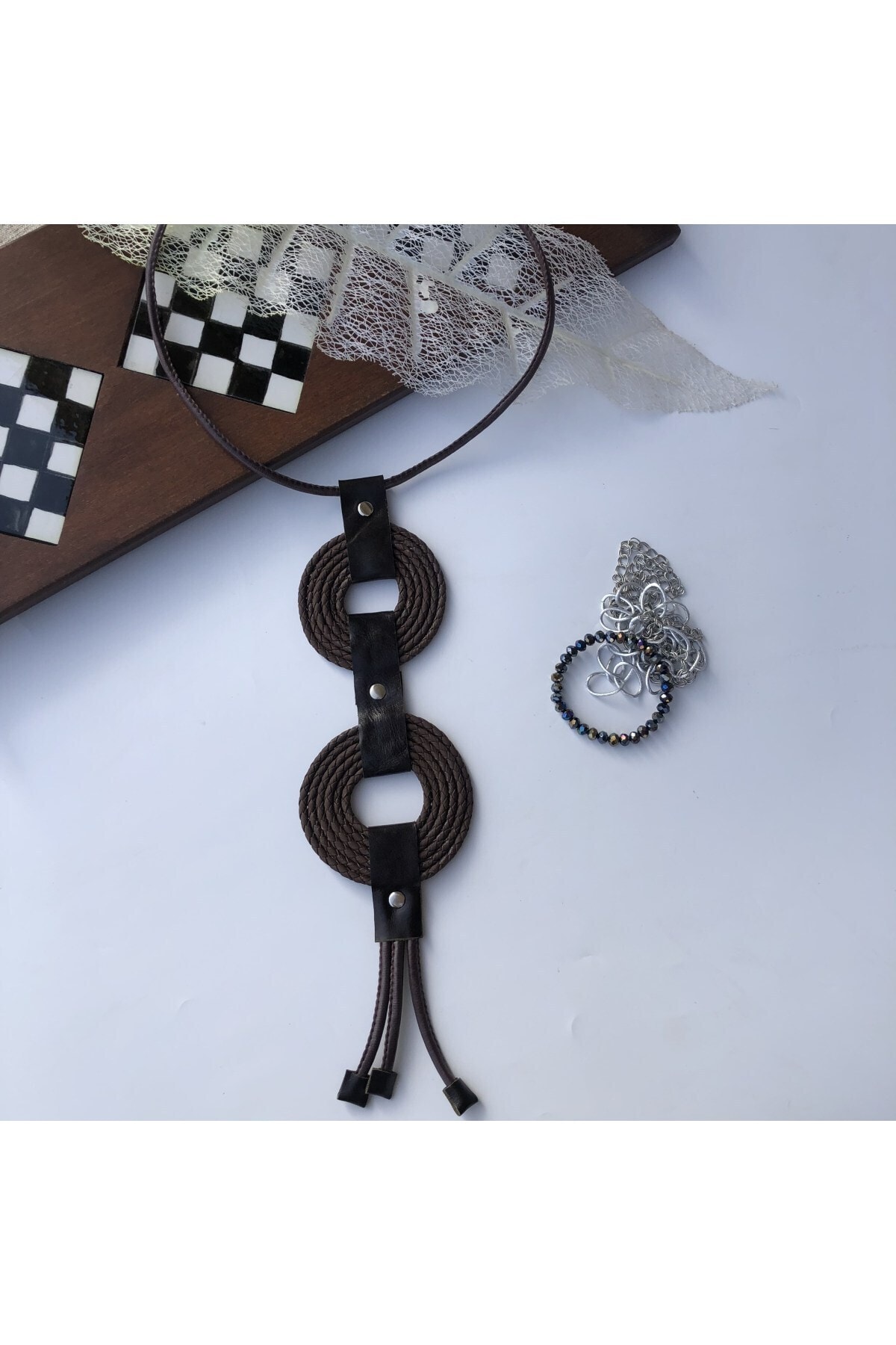Sallantılı Turuncu Deri Kolye Sallantılı Turuncu Deri Kolye SK20180 تک سایز